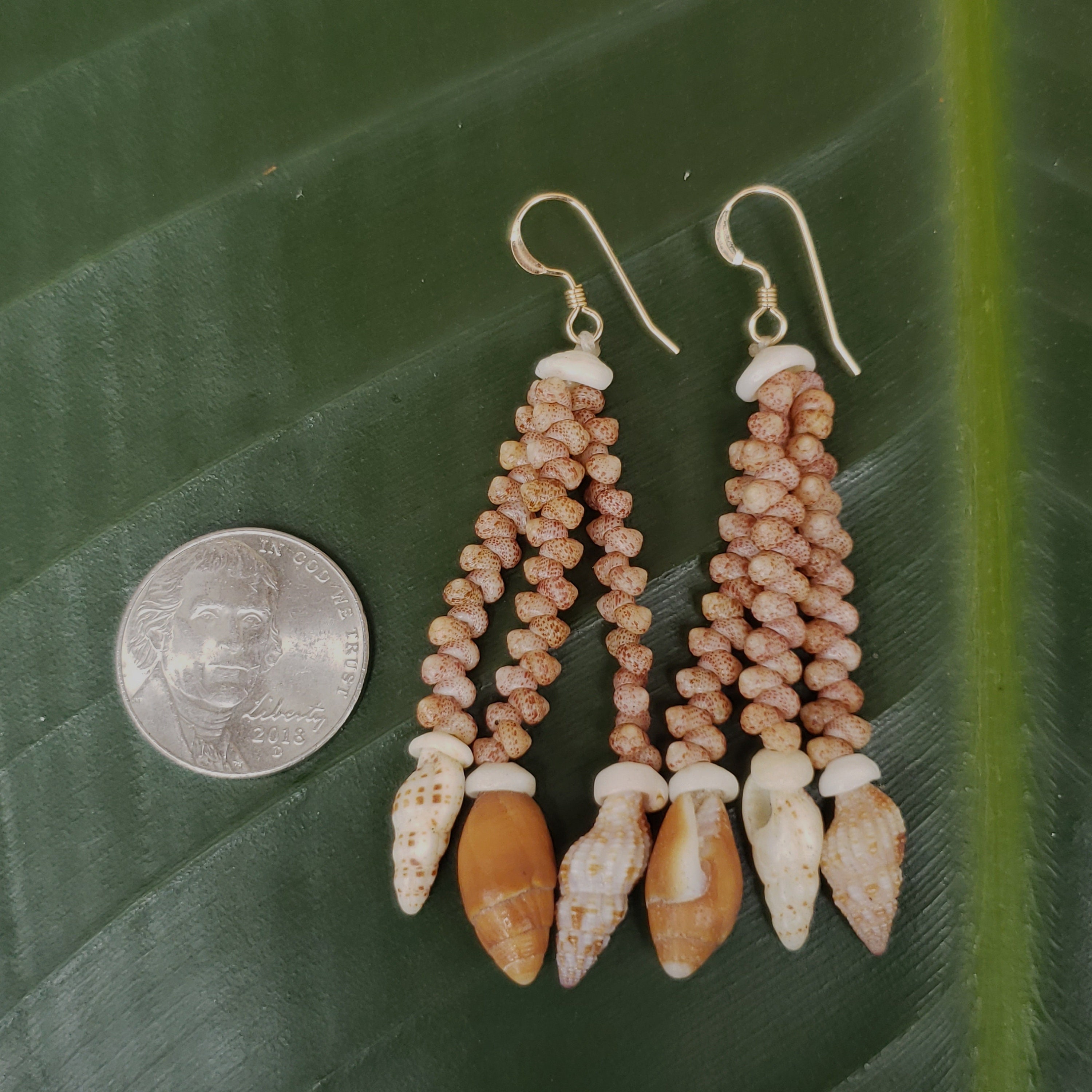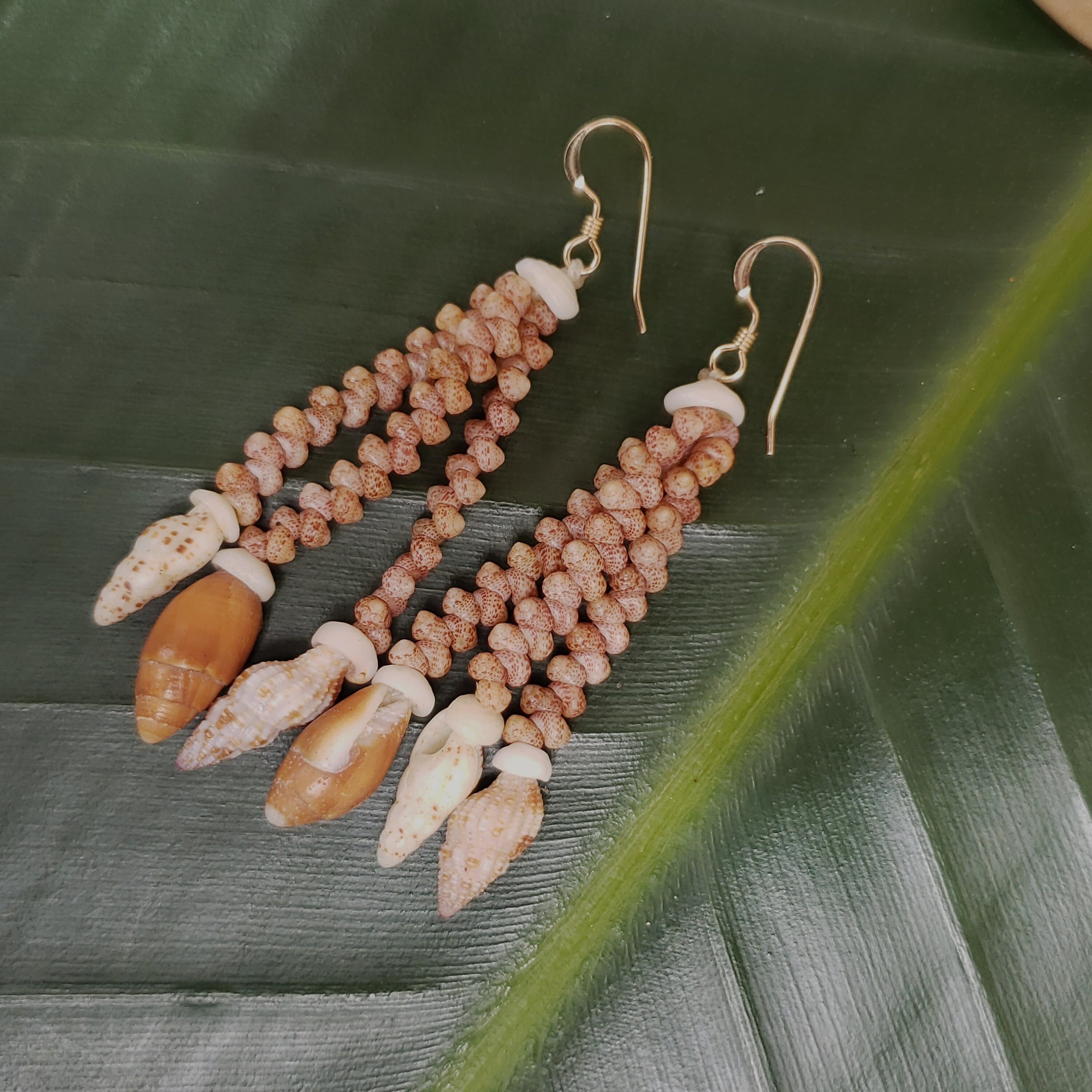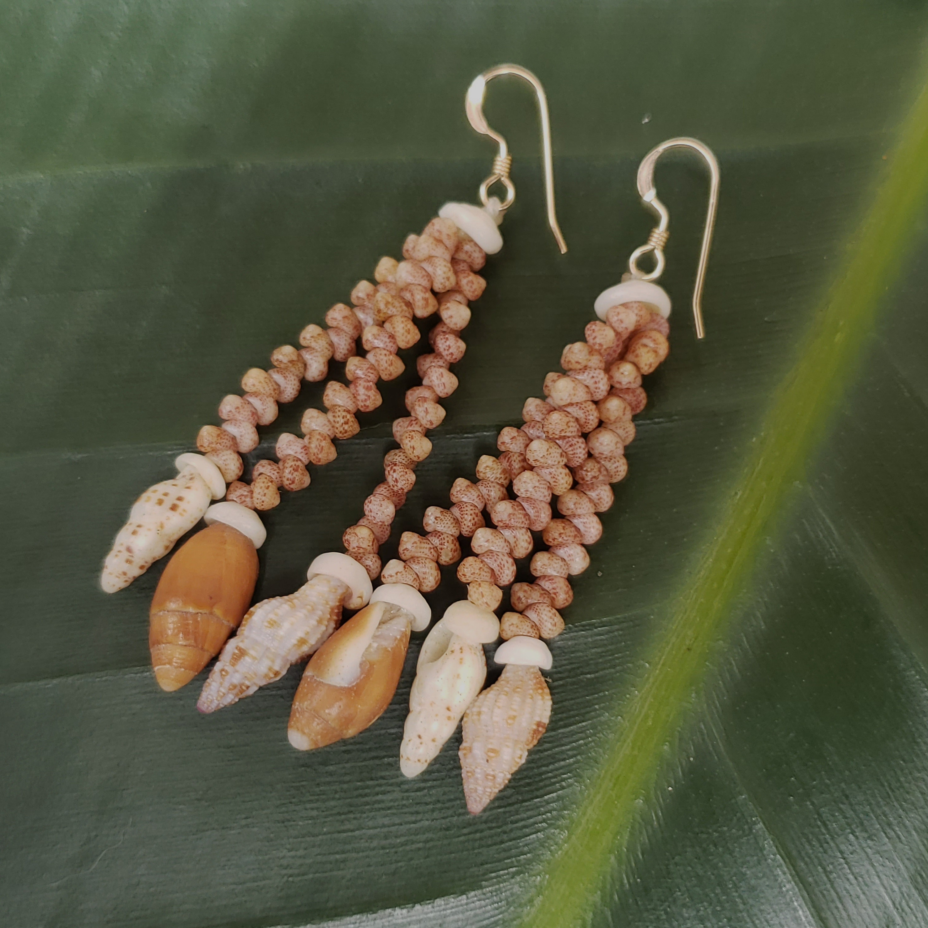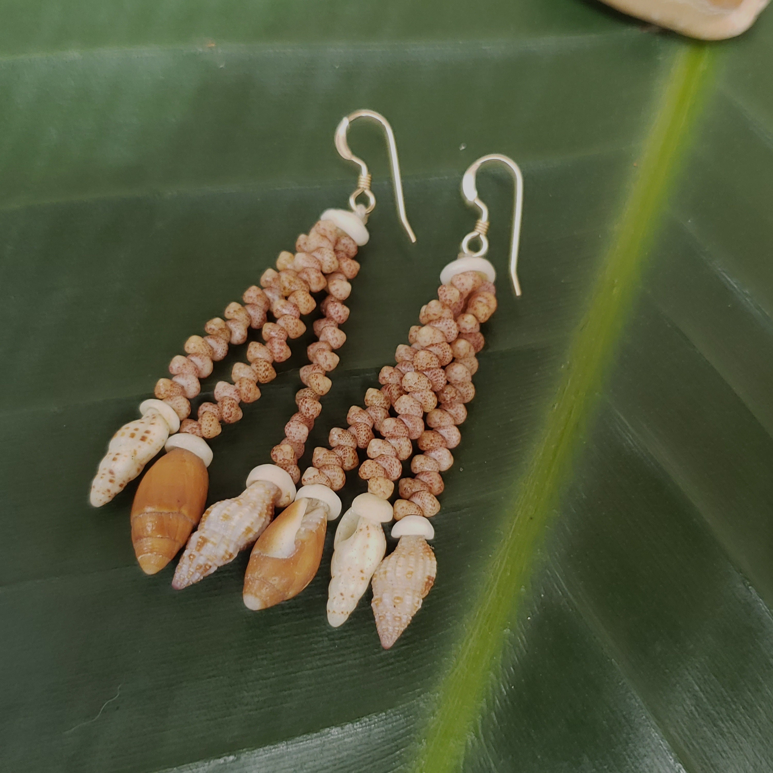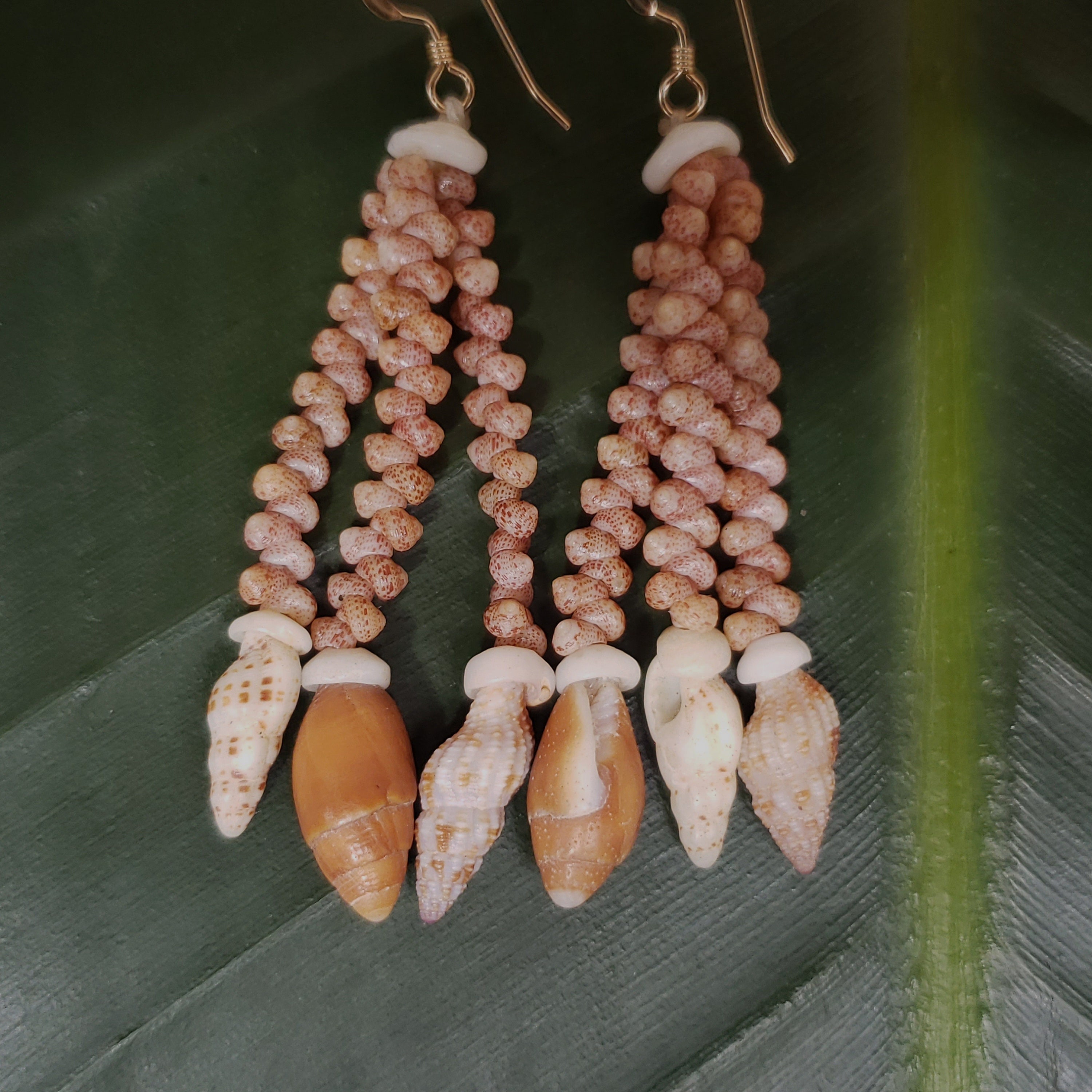 These sea shell earrings are made using the Kahelelani shells, a very rare and valuable shell. Each shell has been hand picked from the beaches of the garden island of Kauai, Hawaii. The shells used in these earrings are very prized and hard to find. To learn more about the process, check out my profile.