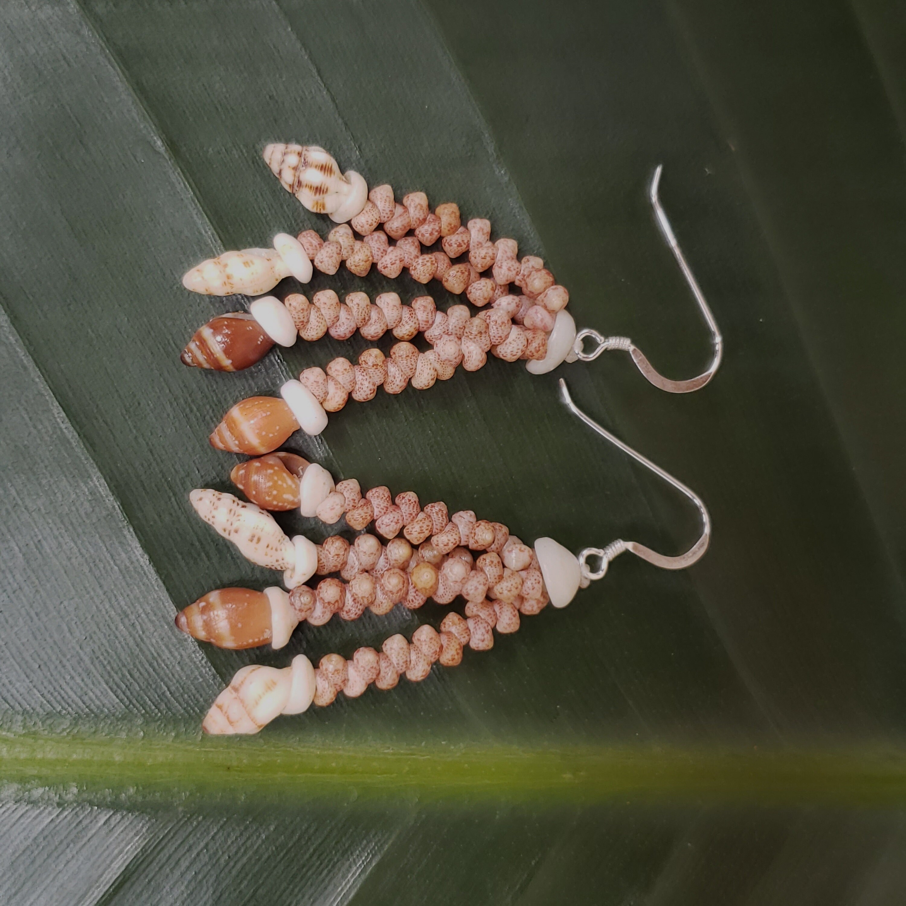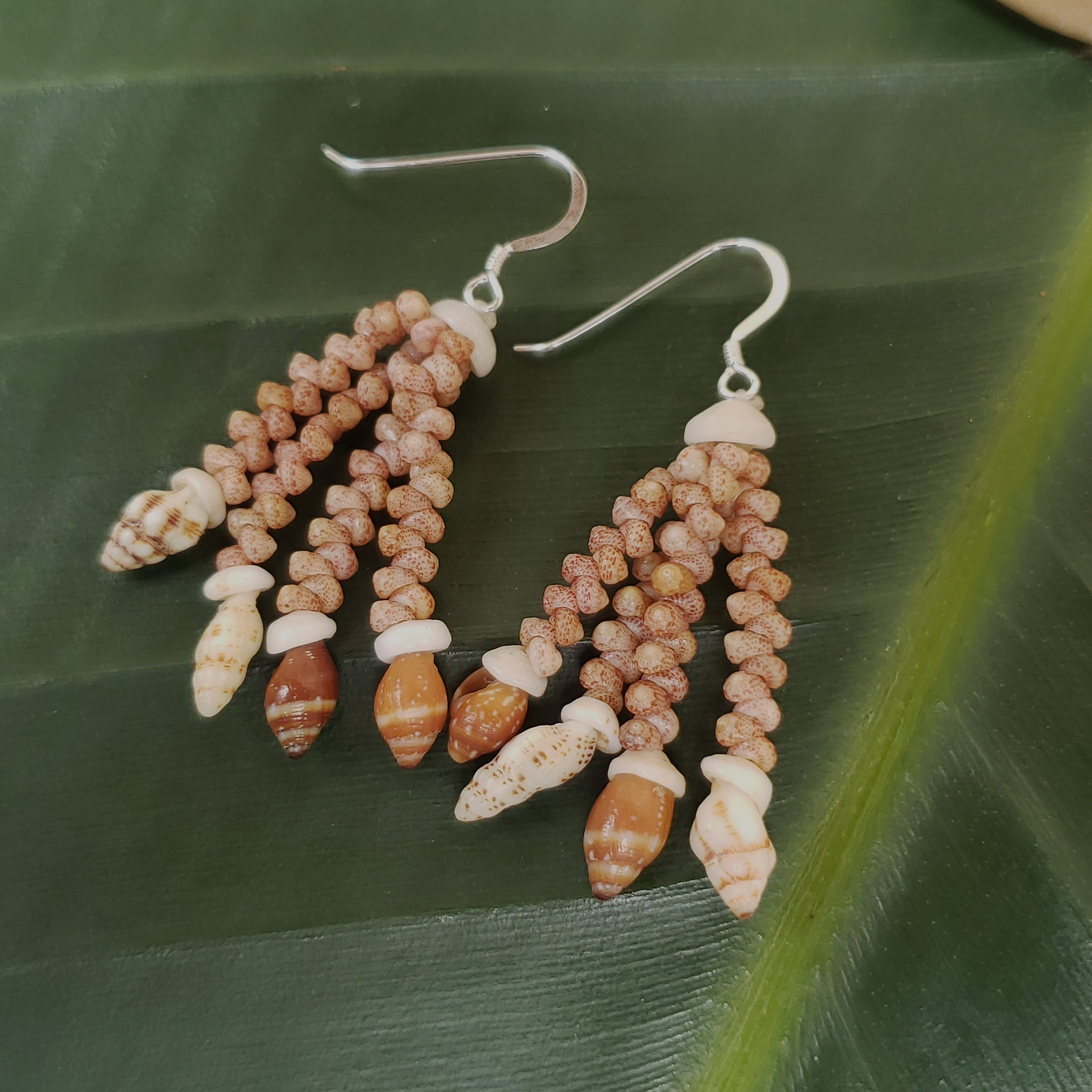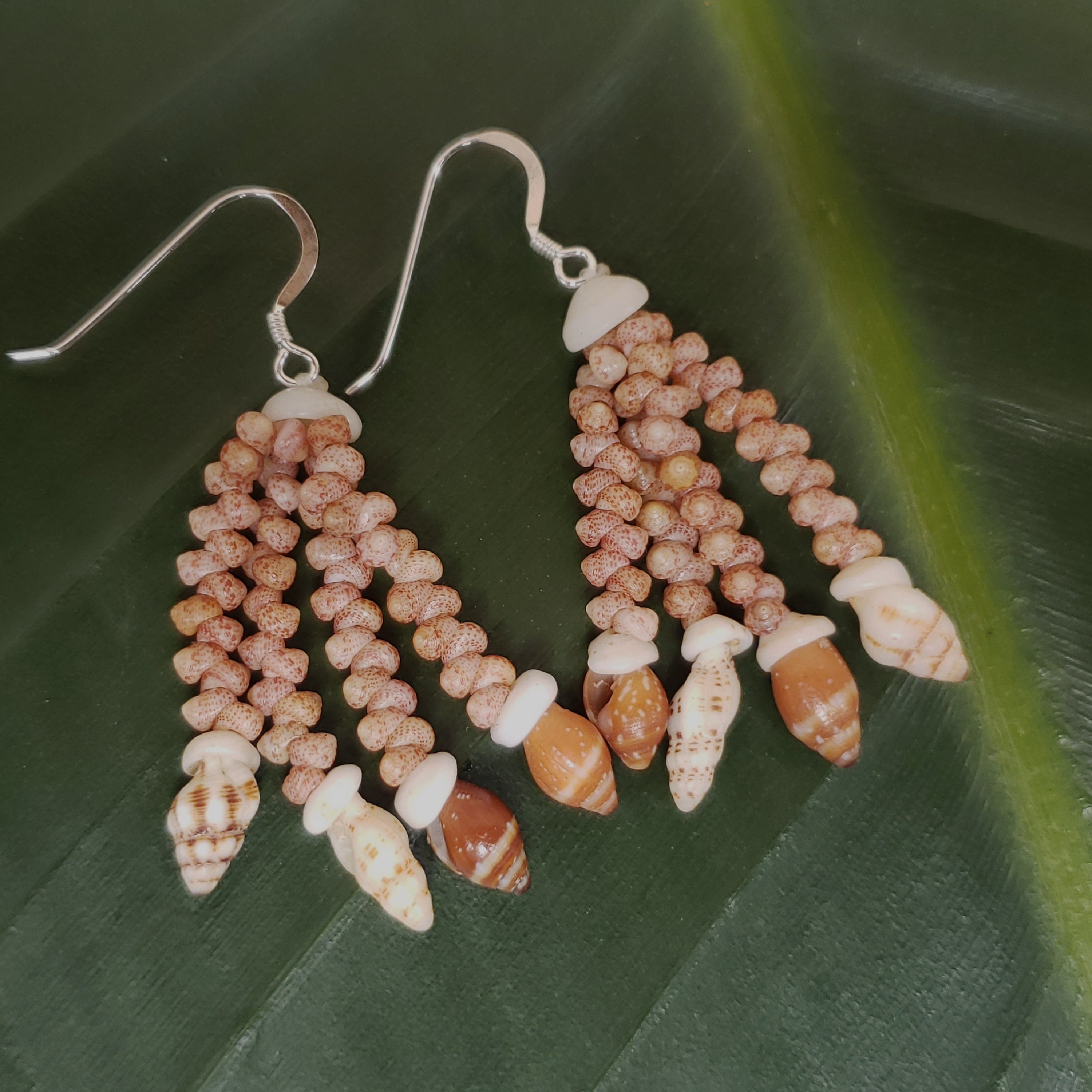 These sea shell earrings are made using the Kahelelani shells, a very rare and valuable shell. Each shell has been hand picked from the beaches of the garden island of Kauai, Hawaii. The shells used in these earrings are very prized and hard to find. To learn more about the process, check out my profile.