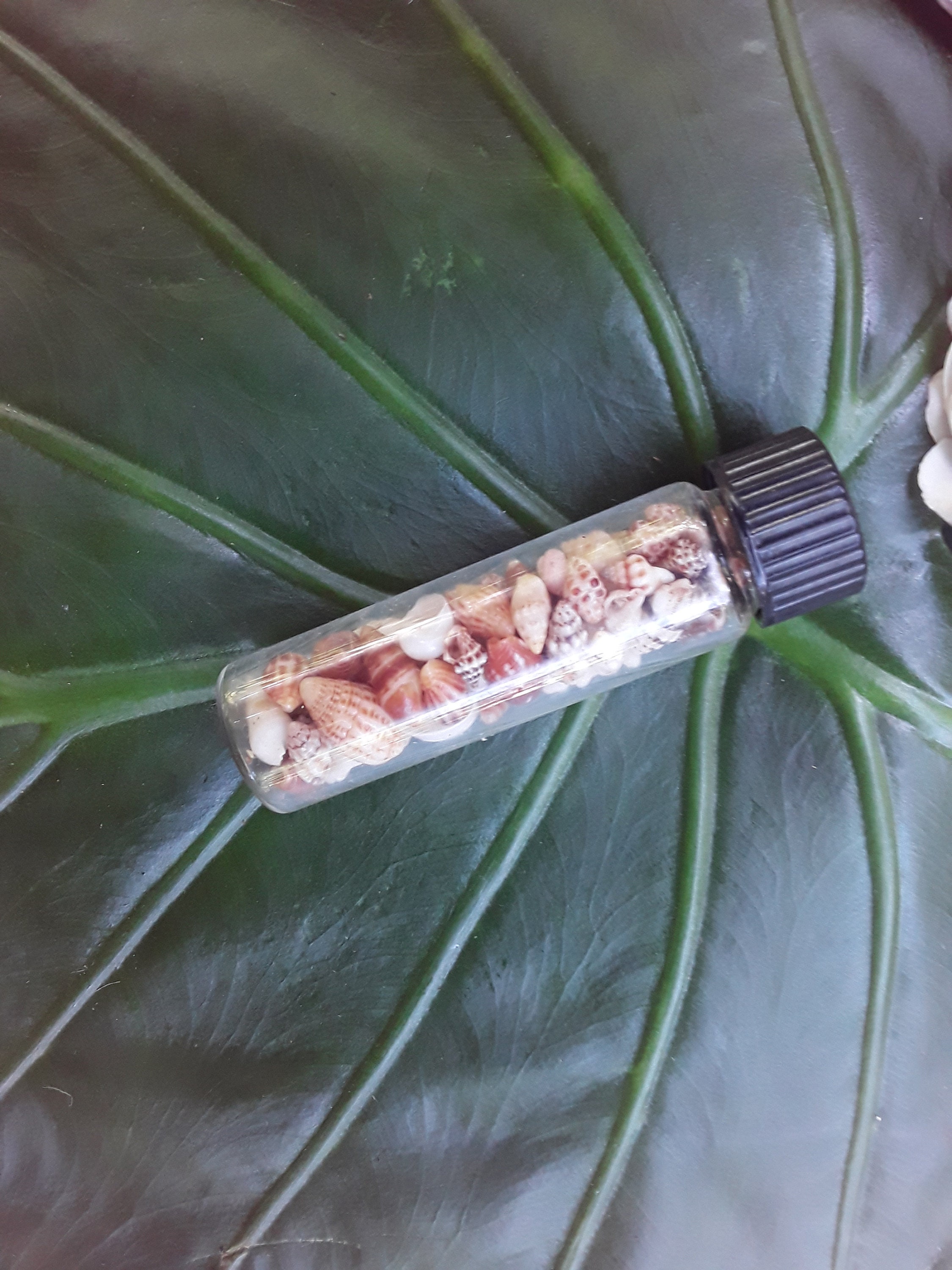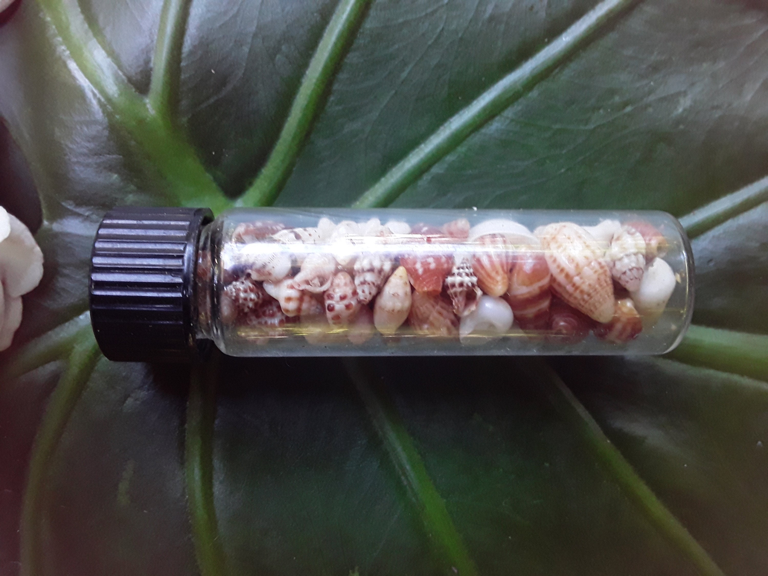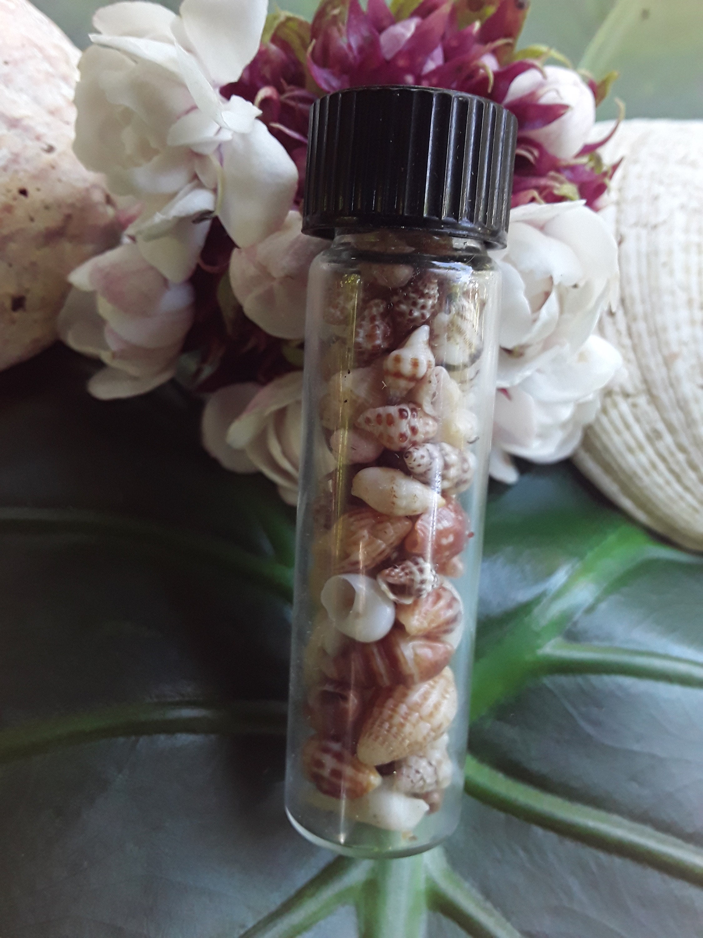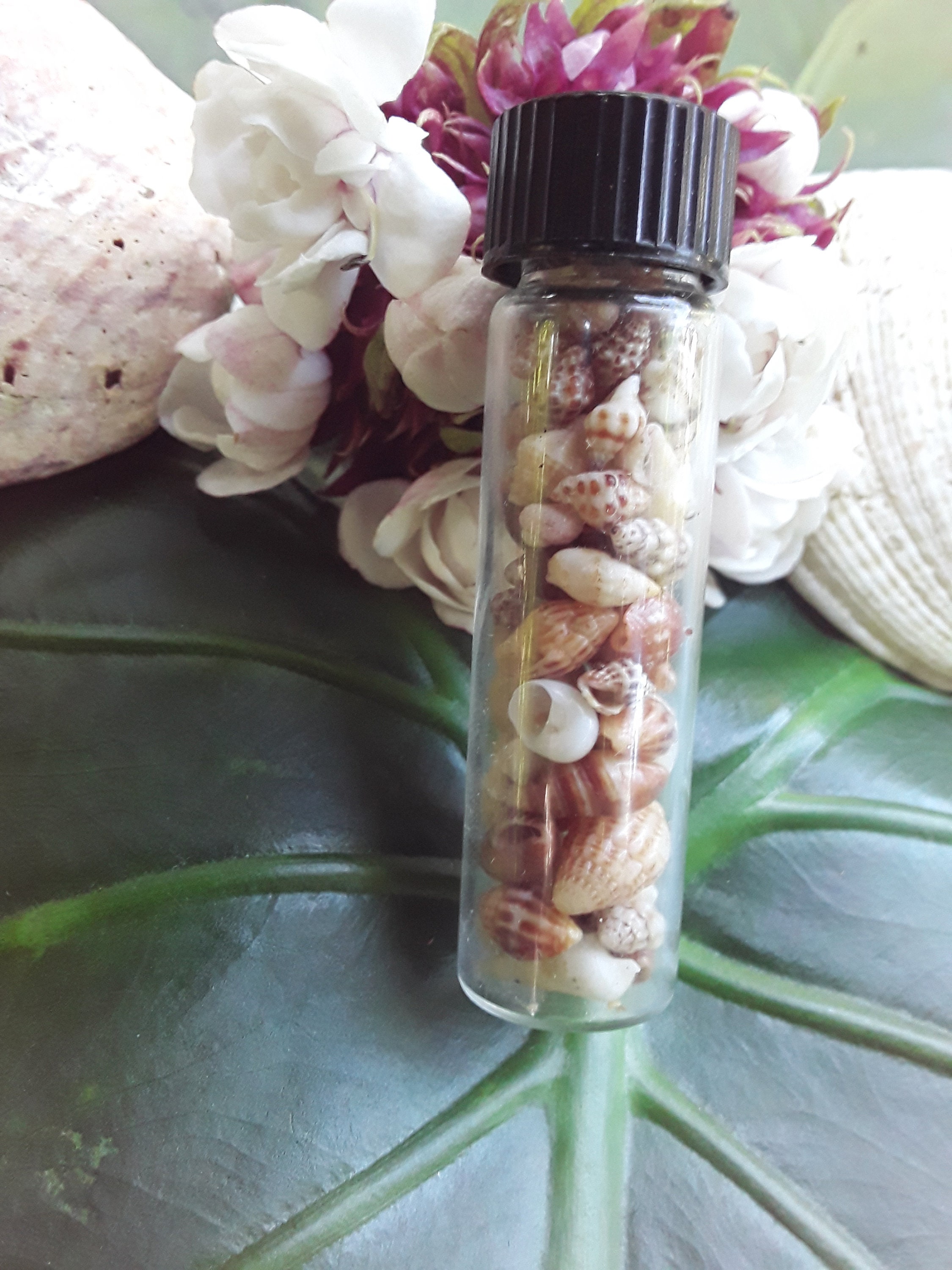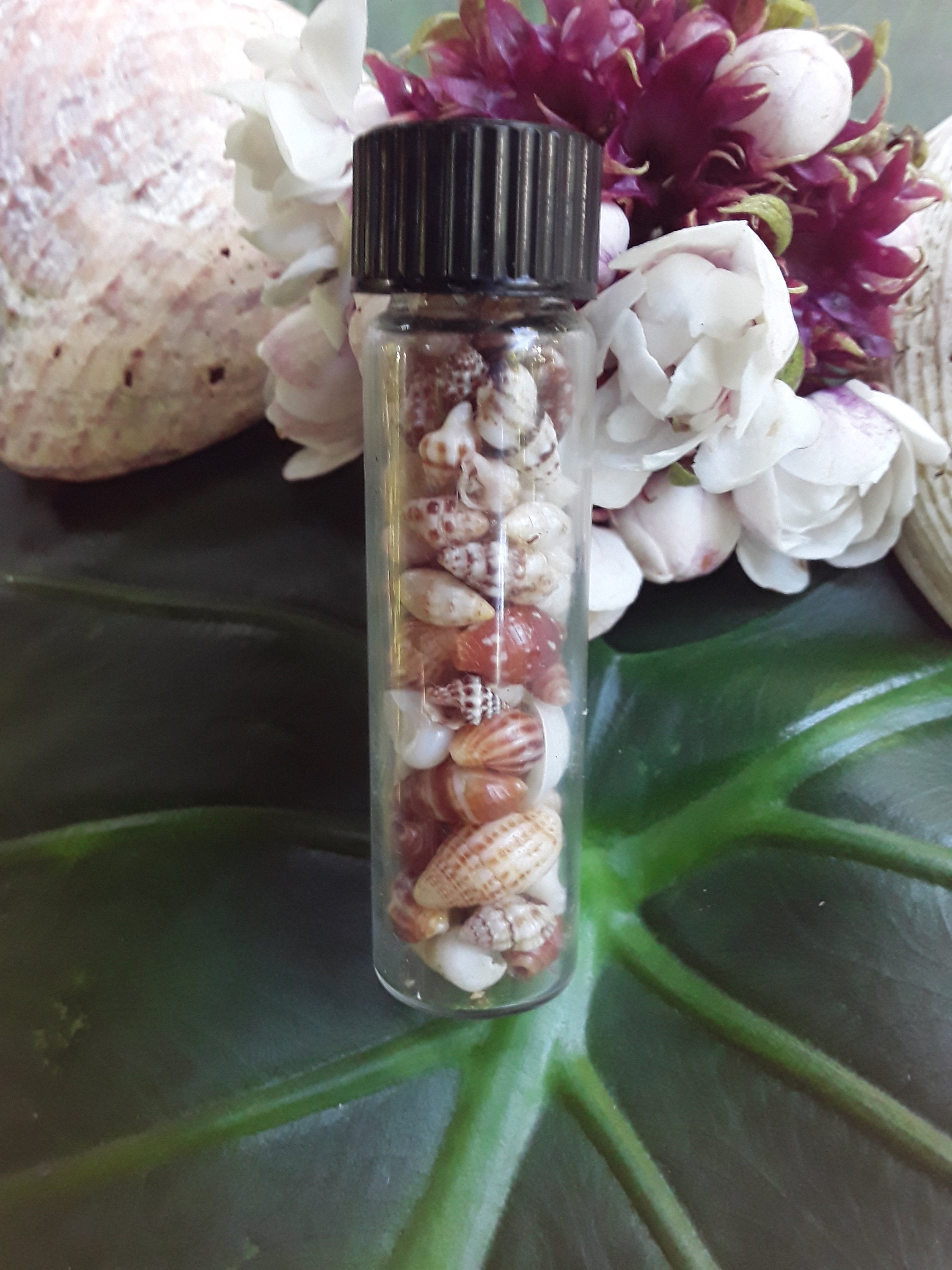 This small vial is filled with authentic Hawaiian Kauai shells.That where hand picked from the beaches of Kauai, Hawaii.