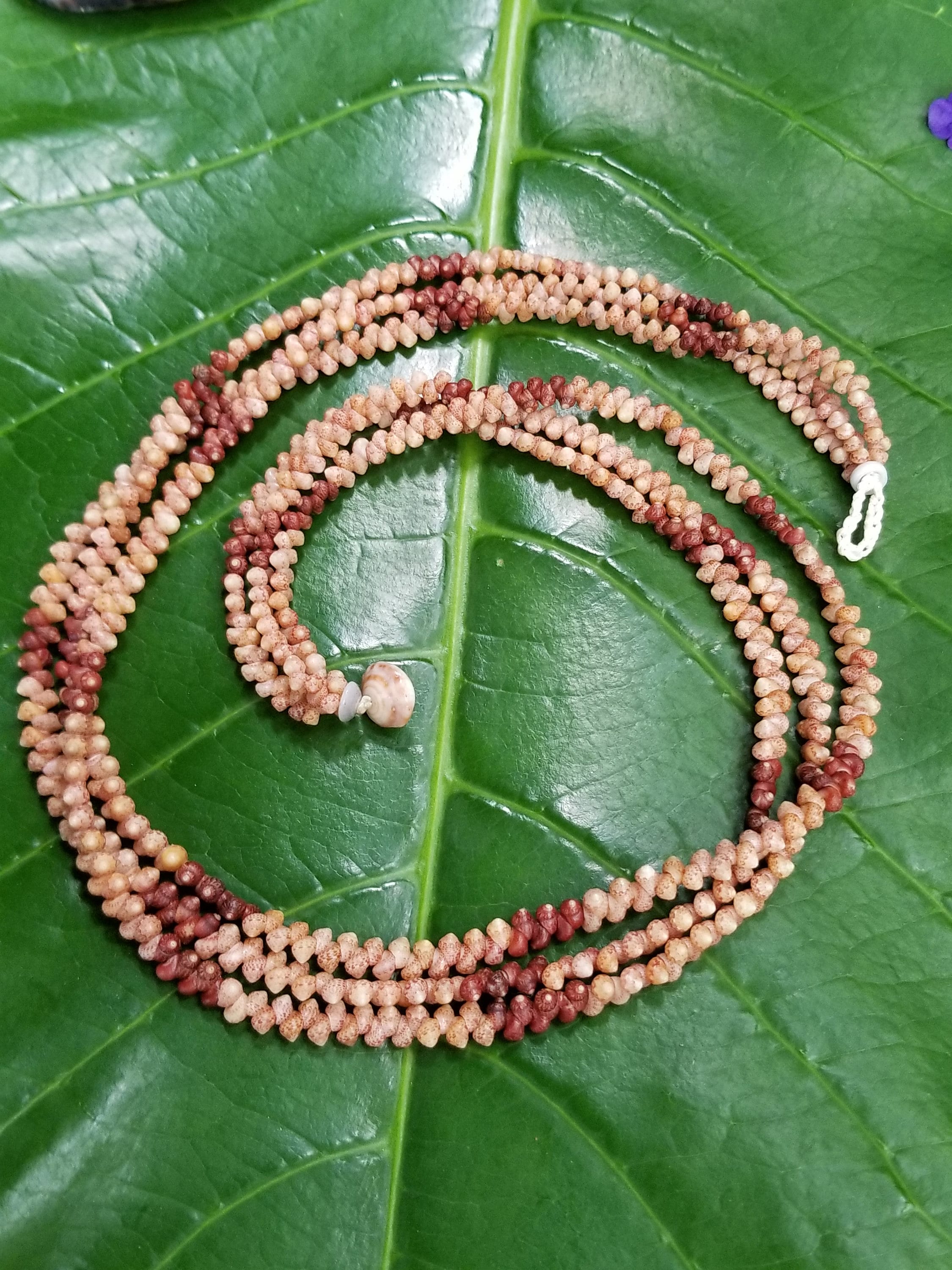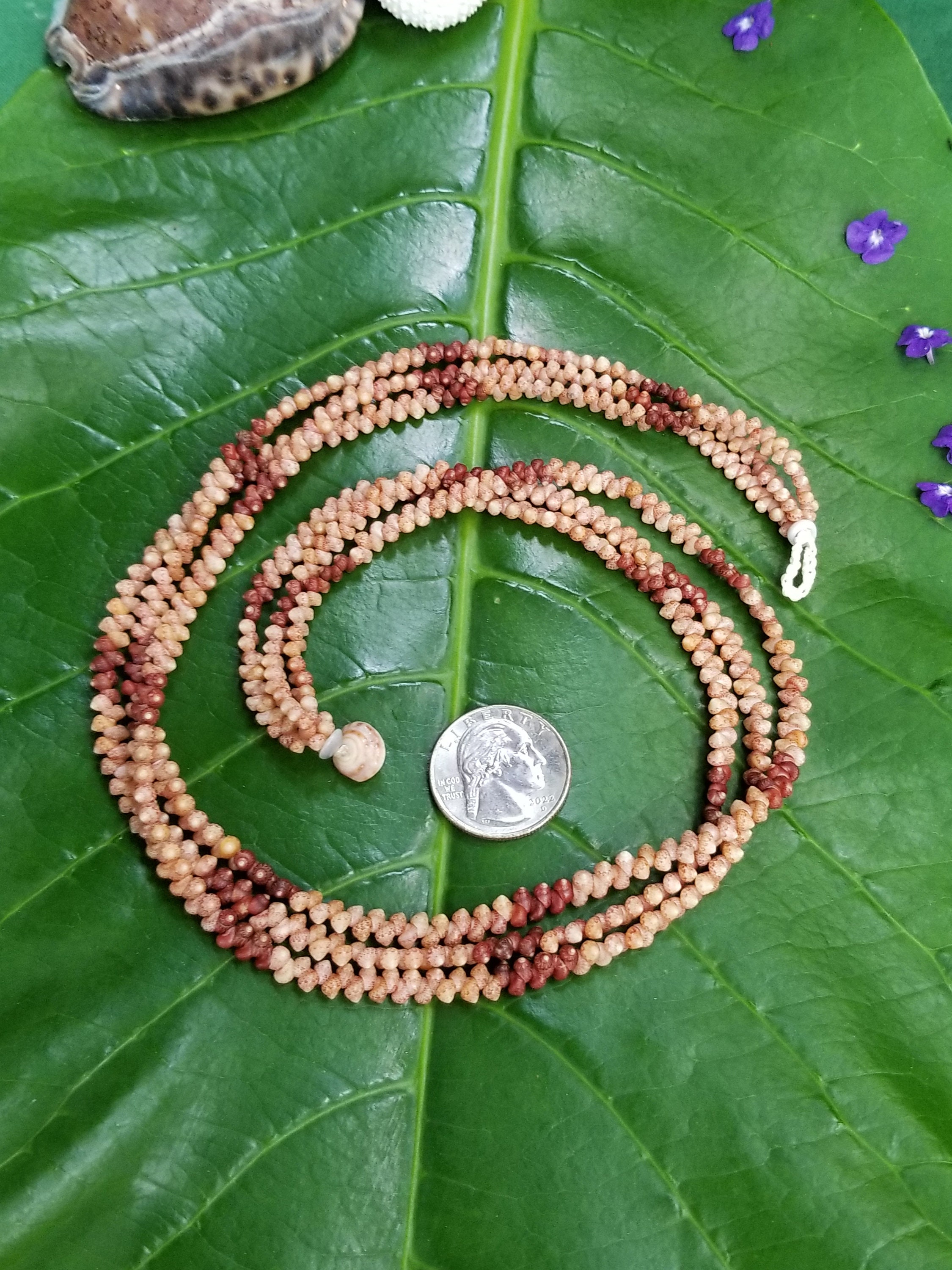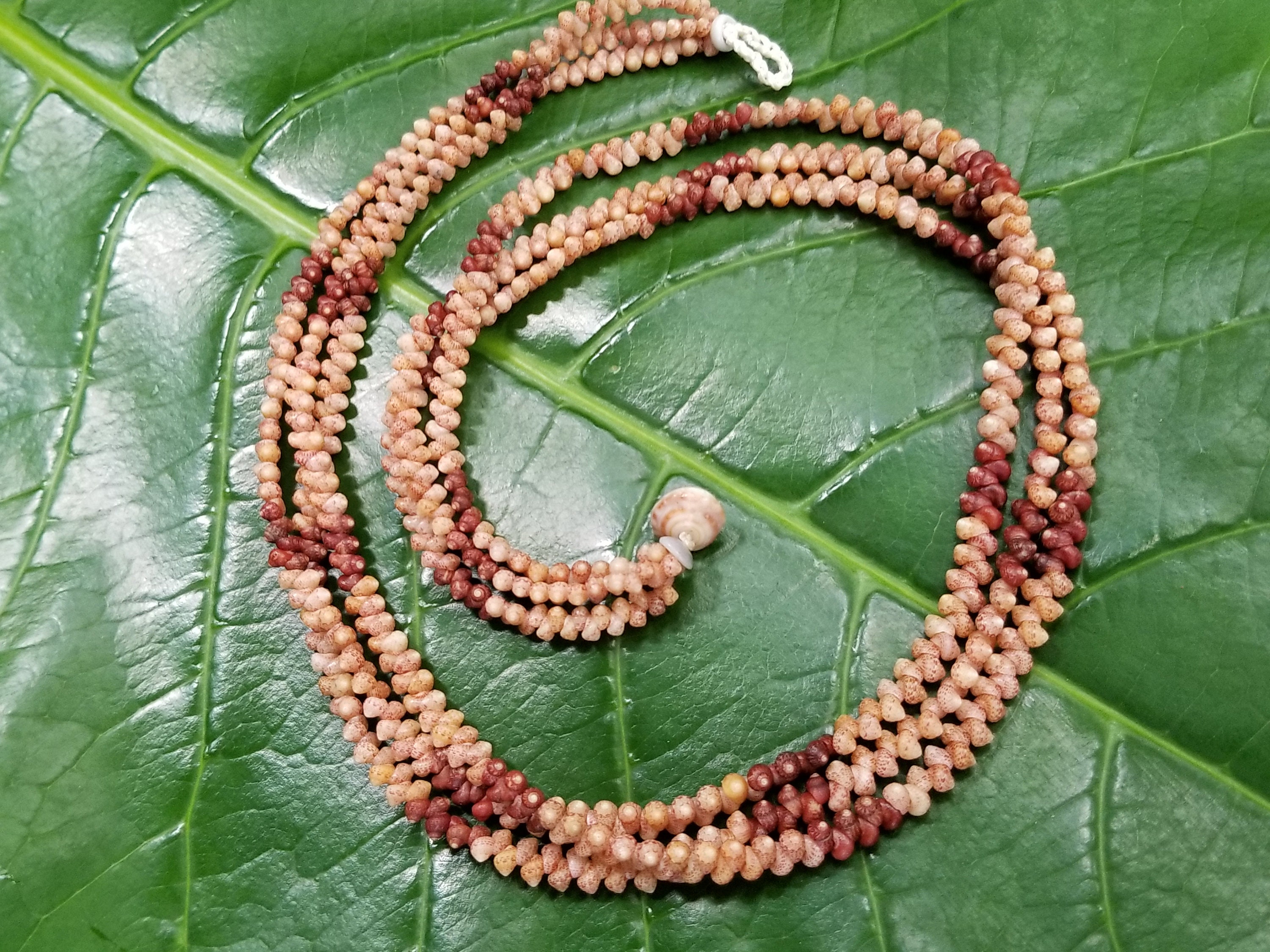 This necklace is made Kahelelani shells all hand picked from the beaches of Kauai, Hawaii. The Kahelelani shells are only found on a few select beaches in Hawaii, and nowhere else in the world. This ancient art form originated on the forbidden Island of Ni'ihau. These are some of the most rare and valuable shells in existance today. This jewelry will continue to gain in value, as the shells are washing in fewer each year due to pollution in our oceans.