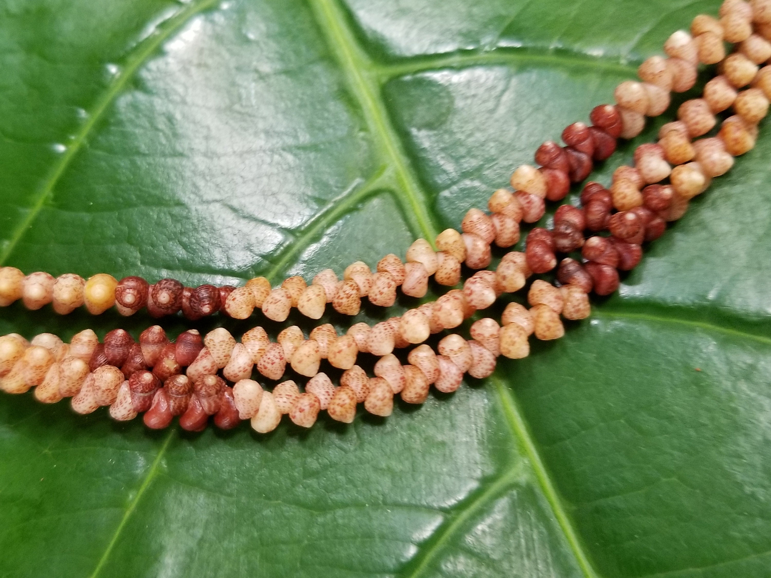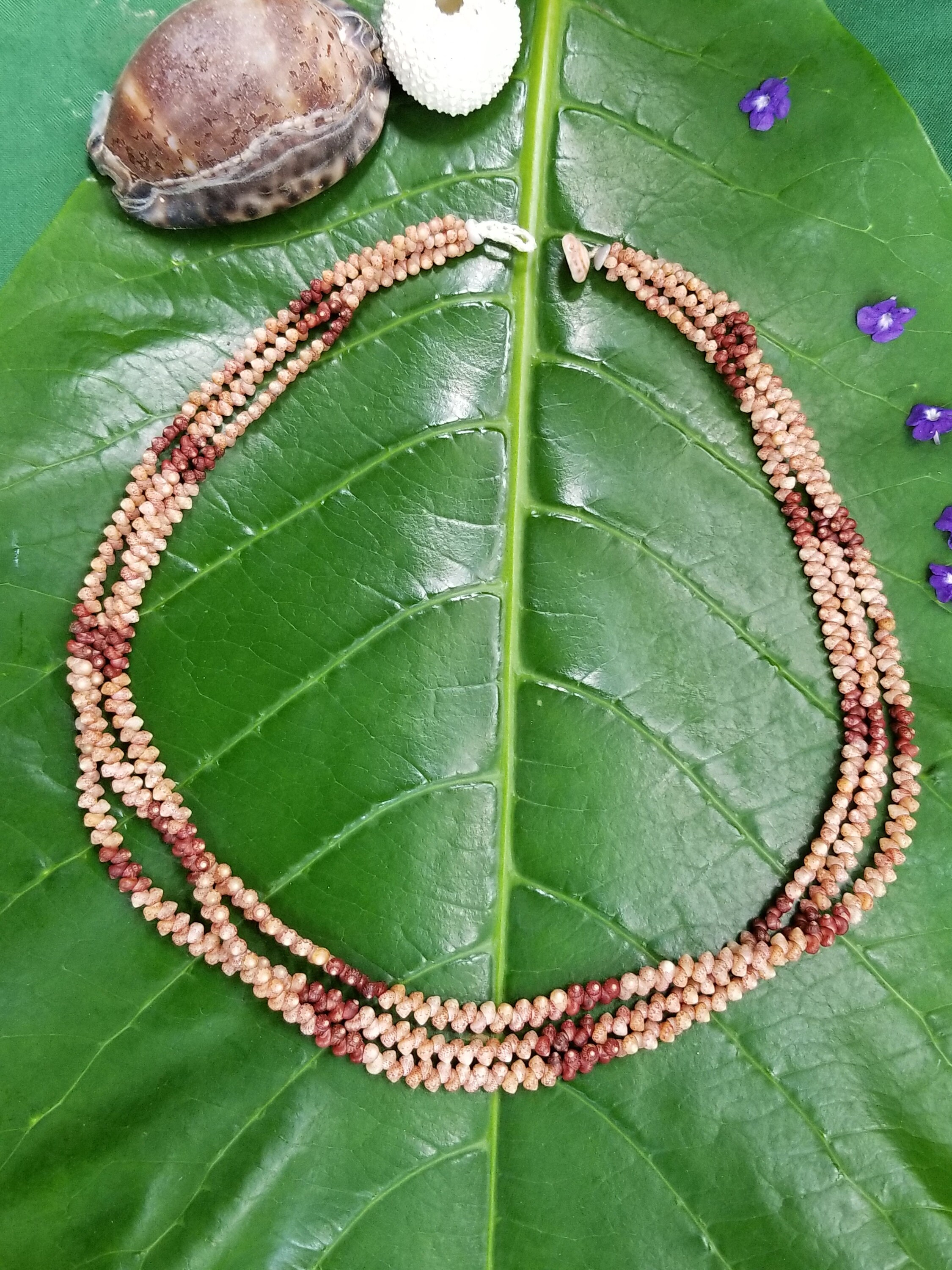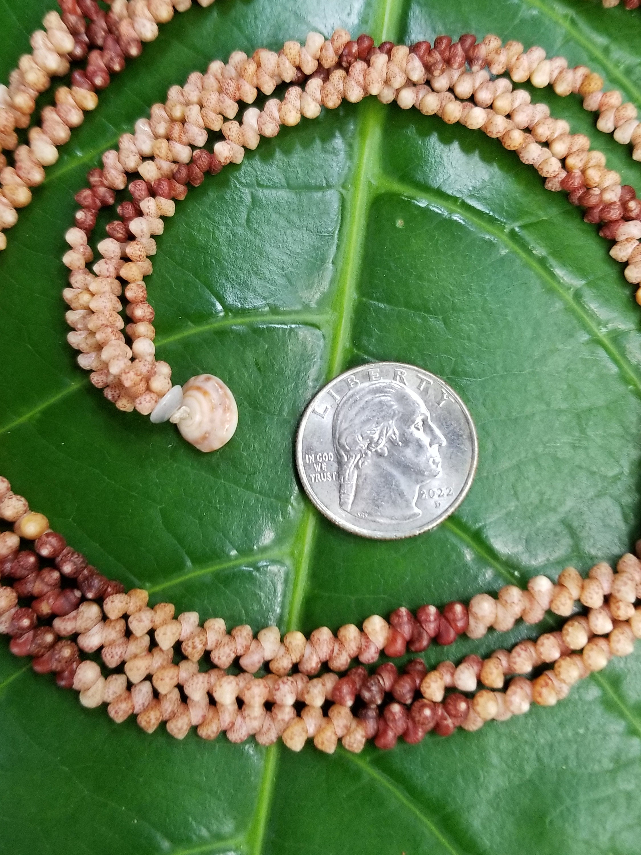 This necklace is made Kahelelani shells all hand picked from the beaches of Kauai, Hawaii. The Kahelelani shells are only found on a few select beaches in Hawaii, and nowhere else in the world. This ancient art form originated on the forbidden Island of Ni'ihau. These are some of the most rare and valuable shells in existance today. This jewelry will continue to gain in value, as the shells are washing in fewer each year due to pollution in our oceans.