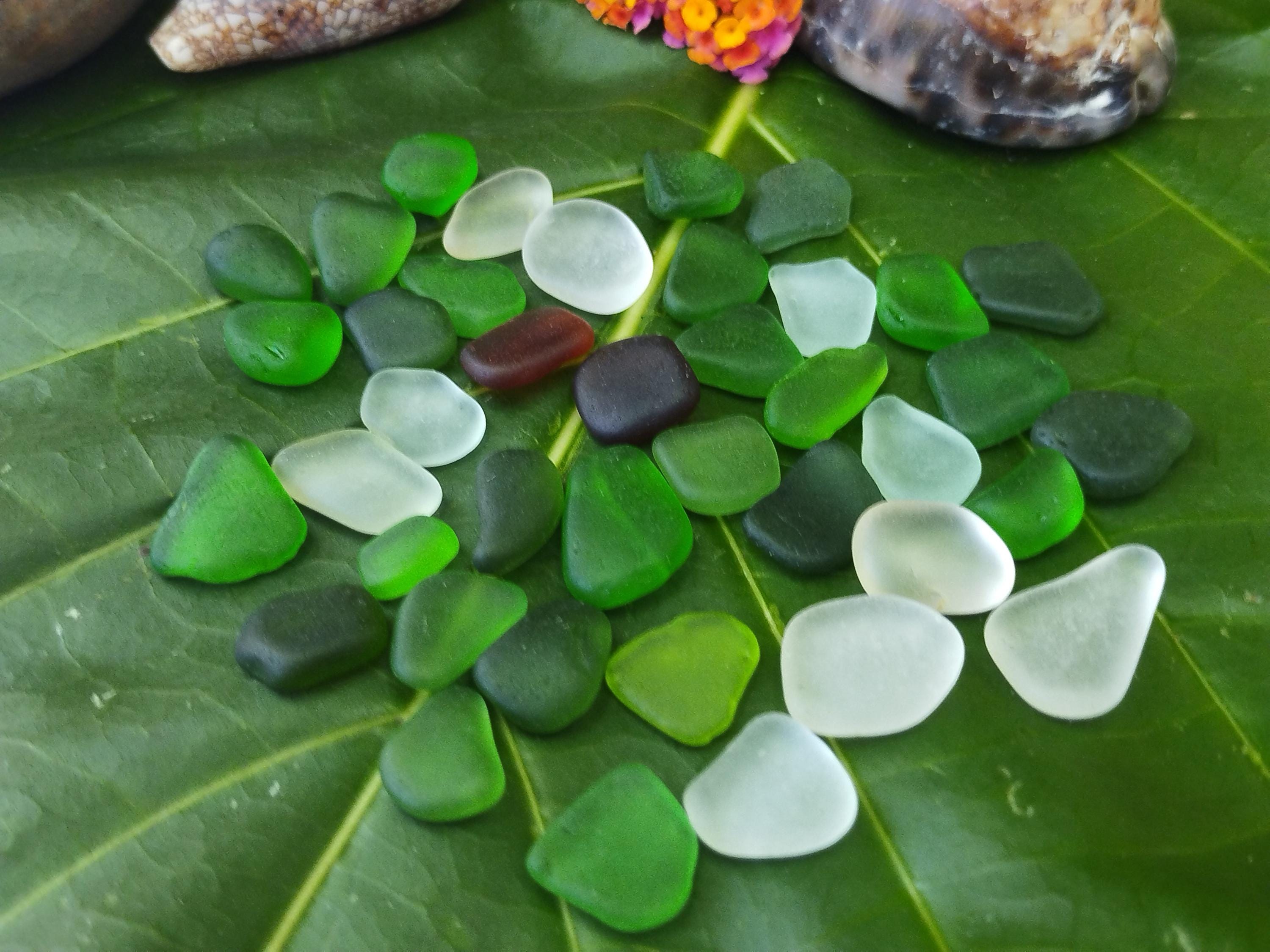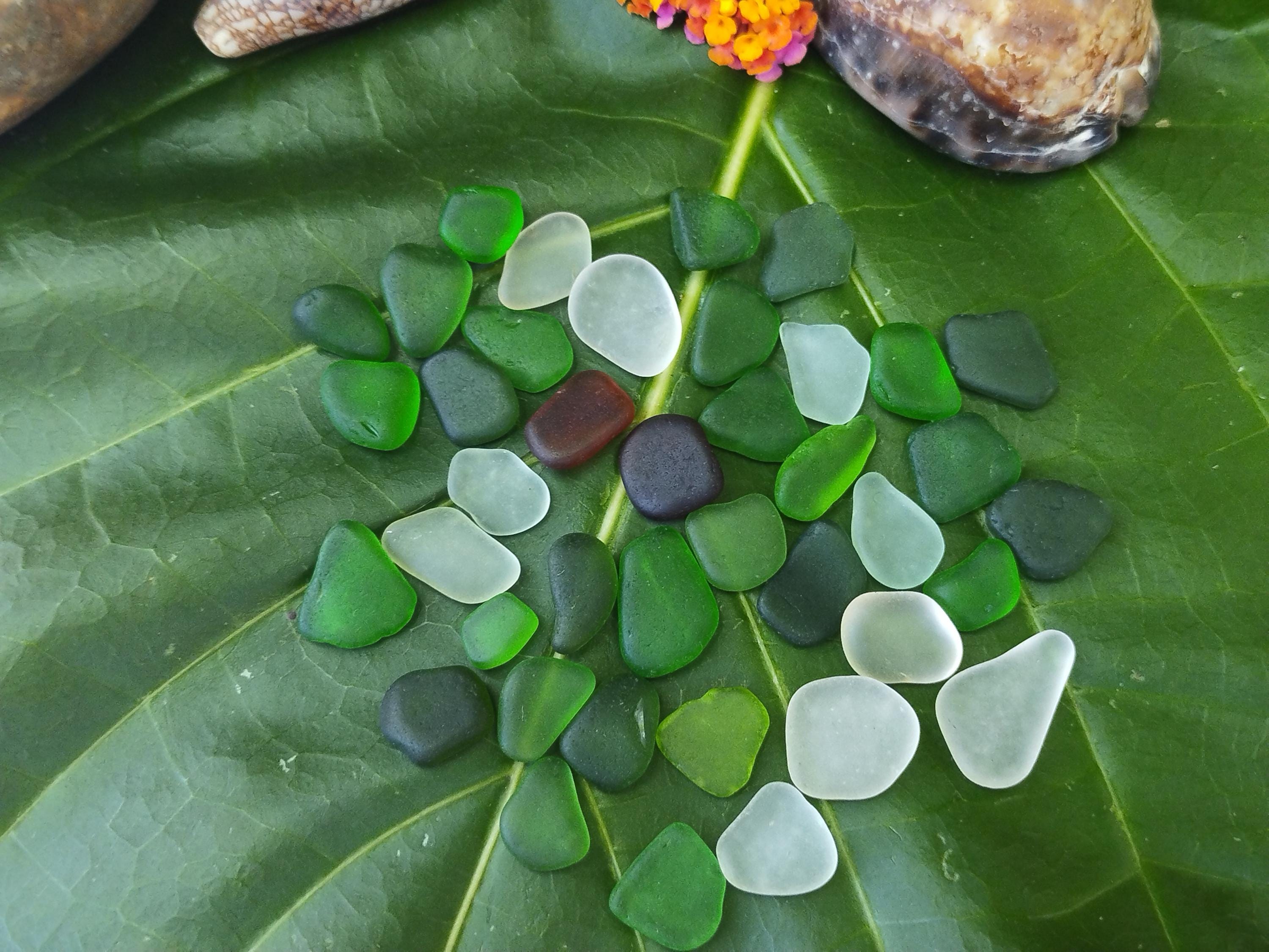This sea glass was all personally hand harvested on the beaches of garden island of Kauai, Hawaii. It takes 50 to 100 years of tumbling in the ocean to become rounded and smooth as shown here. These pieces are in their natural form, straight from the beach to you! This is an assortment of very interesting shapes and colors. Sea glass can be used for mosaics, beads, pendants, earrings, and much much more.