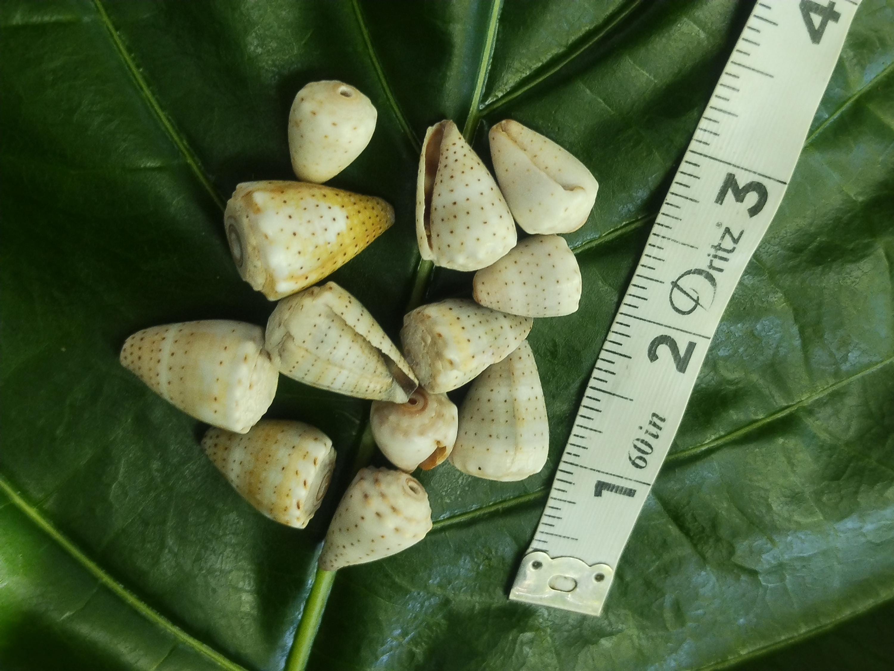 Kauai abbreviated cone shells with holes drilled in the tops great for crafts, decorations and jewelry making. All of these shells have been hand collected Eco-friendly then sorted from the north shores of the garden island of Kauai, Hawaii.