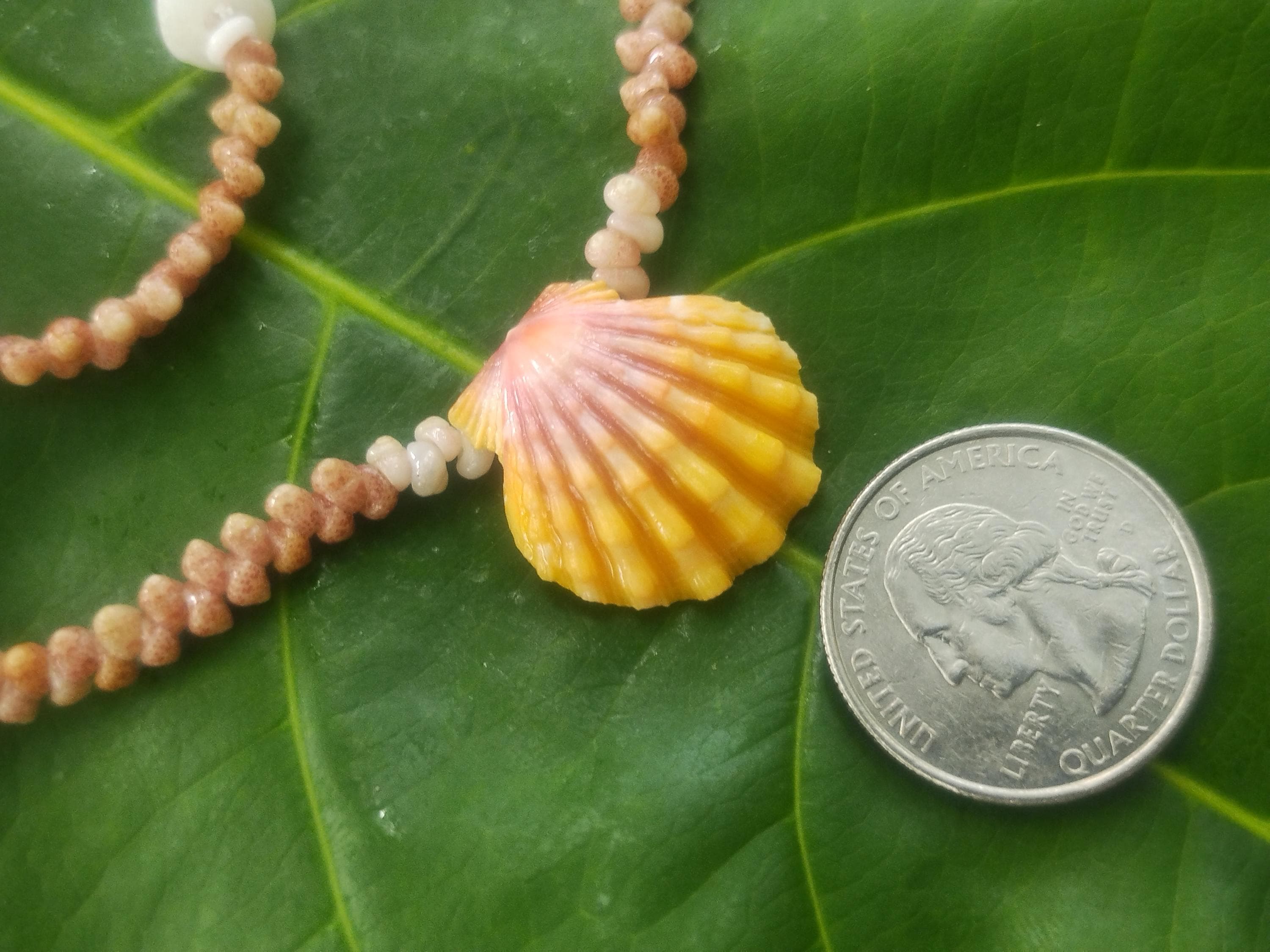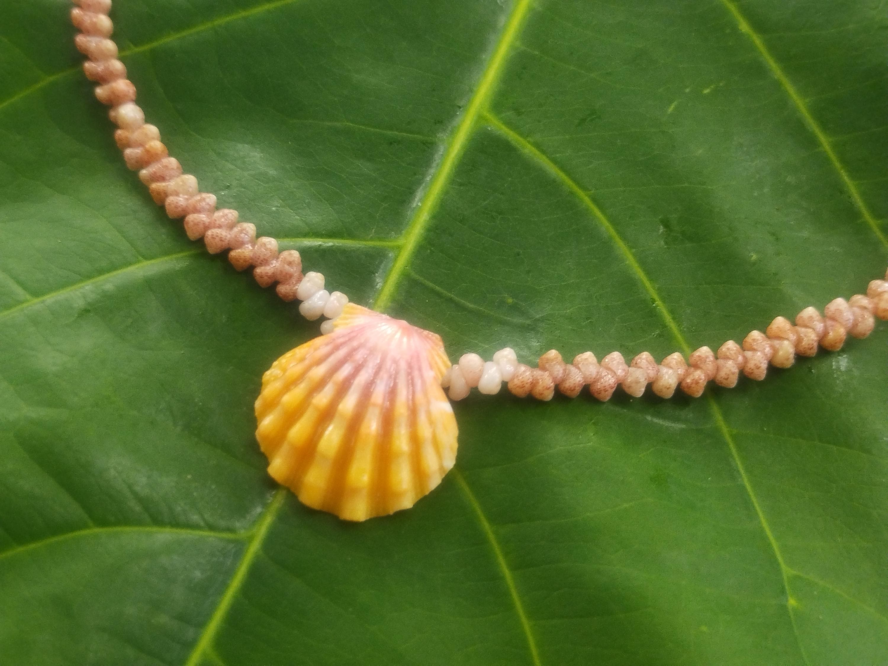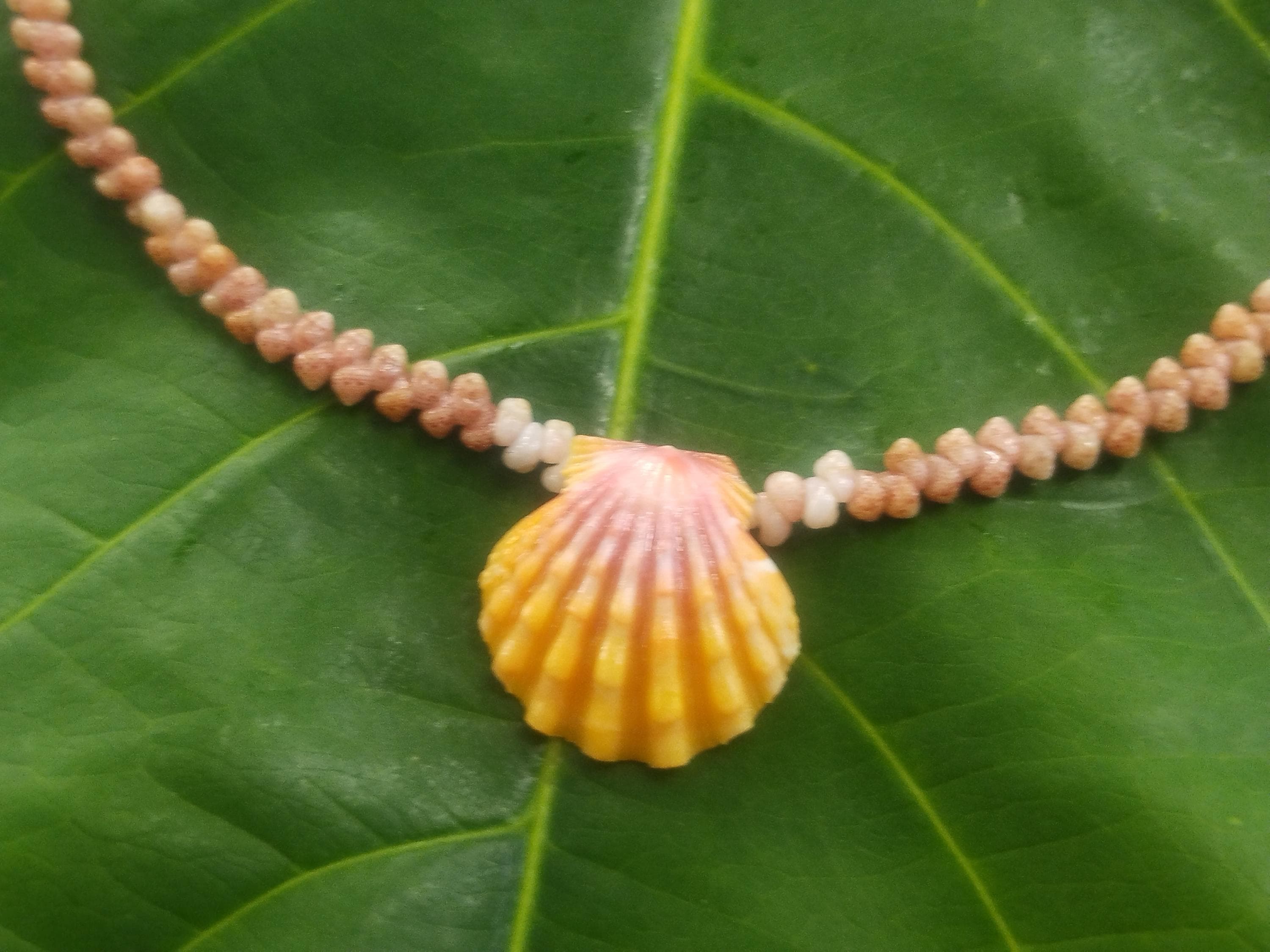 This classic Hawaiian Sunrise Shell is very high quality with strong ridges and both it's wings in tact. The colors on this shell are 100% natural, just as it was found on the shores of Kauai, Hawaii. The Sunrise shells and the Kahelelani shells were only worn by the royalty in the old Hawaiian days and were highly regarded for their beauty and rarity. Today they are extremely hard to find, being one of the most sought after and valuable shells in the ocean. This traditional Ni'ihau herringbone design is very versatile, comfortable, and durable.
