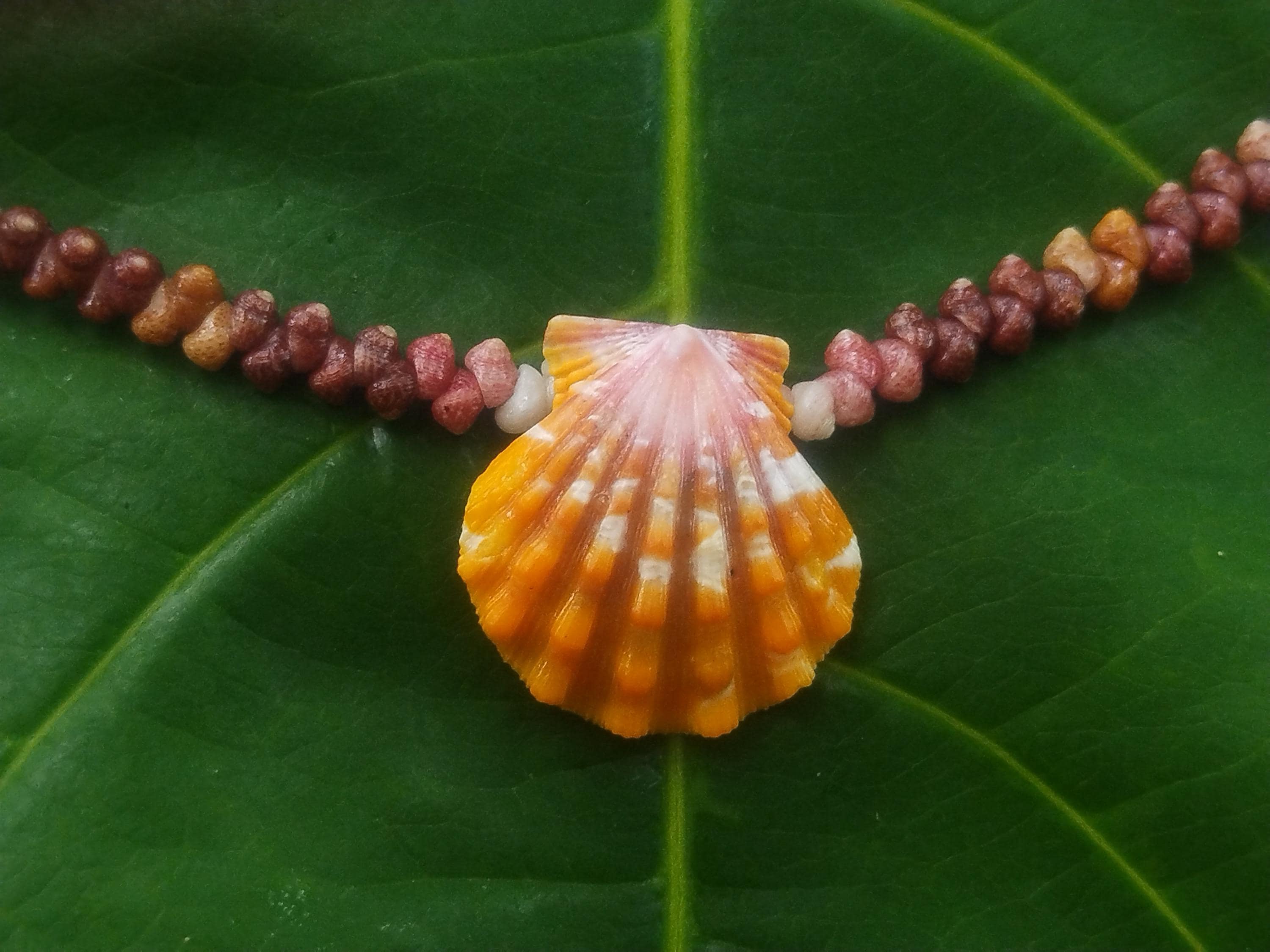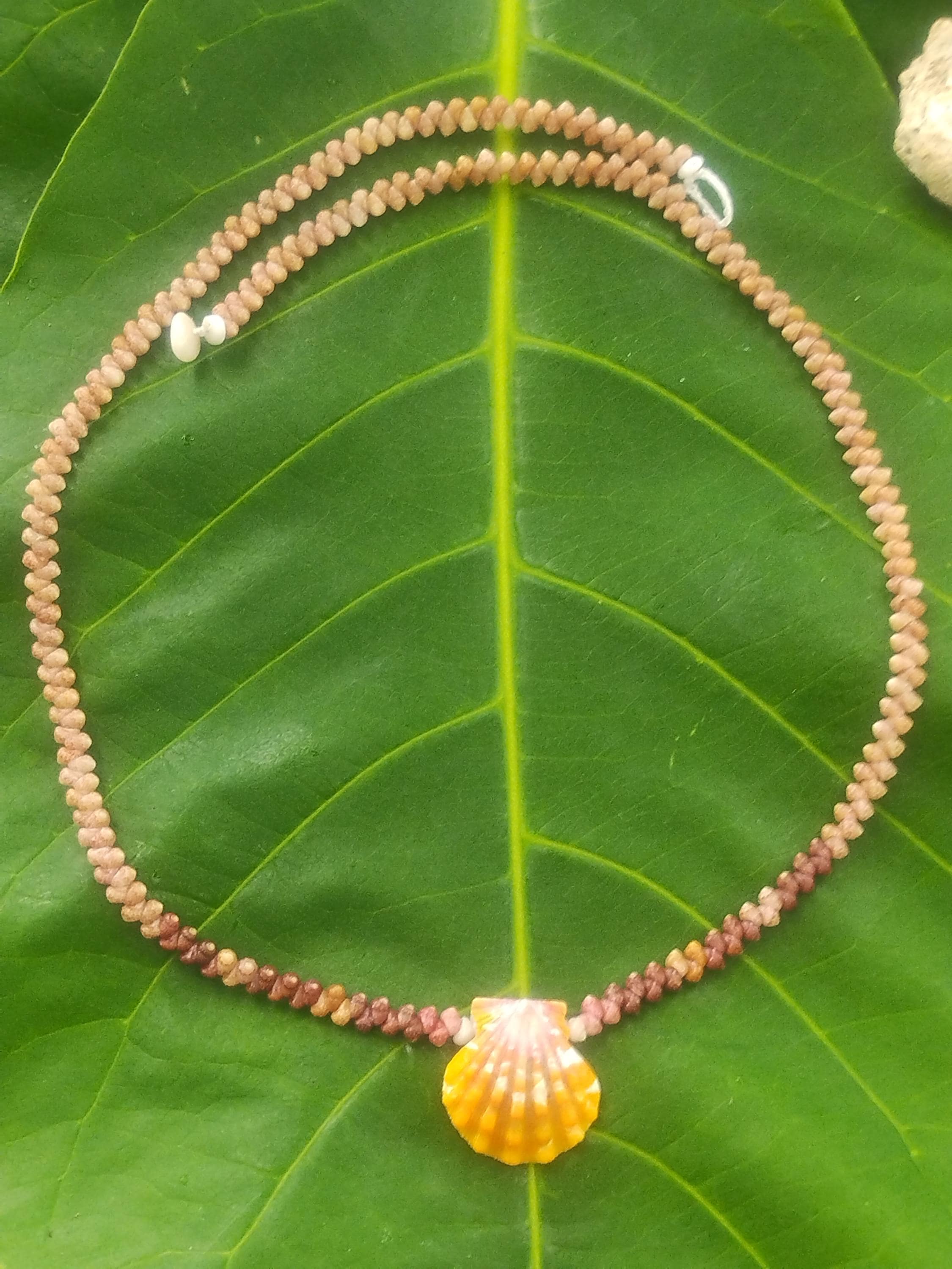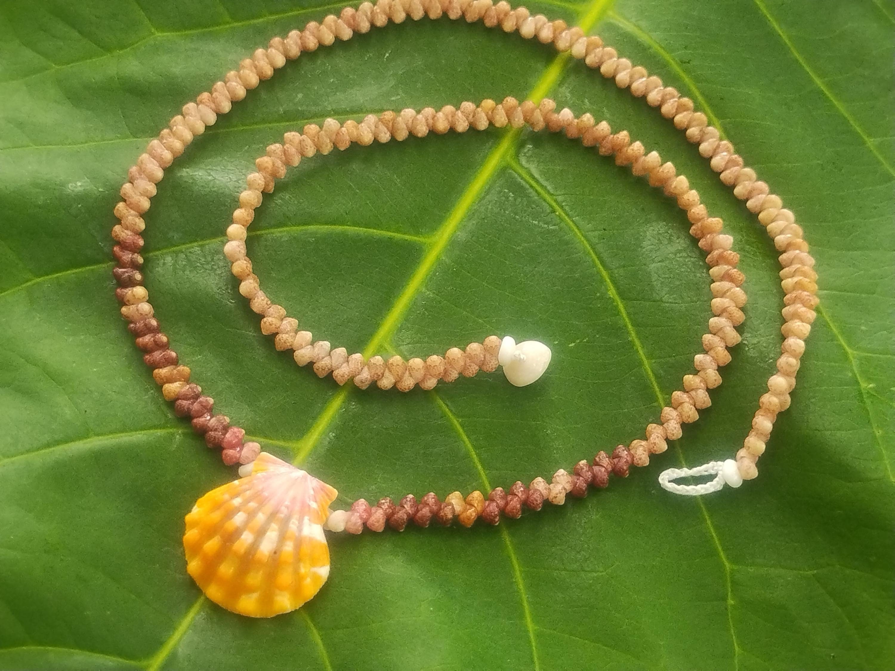 This classic Hawaiian Sunrise Shell is very high quality with strong ridges and both it's wings in tact. The colors on this shell are 100% natural, just as it was found on the shores of Kauai, Hawaii. The Sunrise shells and the Kahelelani shells were only worn by the royalty in the old Hawaiian days and were highly regarded for their beauty and rarity. Today they are extremely hard to find, being one of the most sought after and valuable shells in the ocean. This traditional Ni'ihau herringbone design is very versatile, comfortable, and durable.