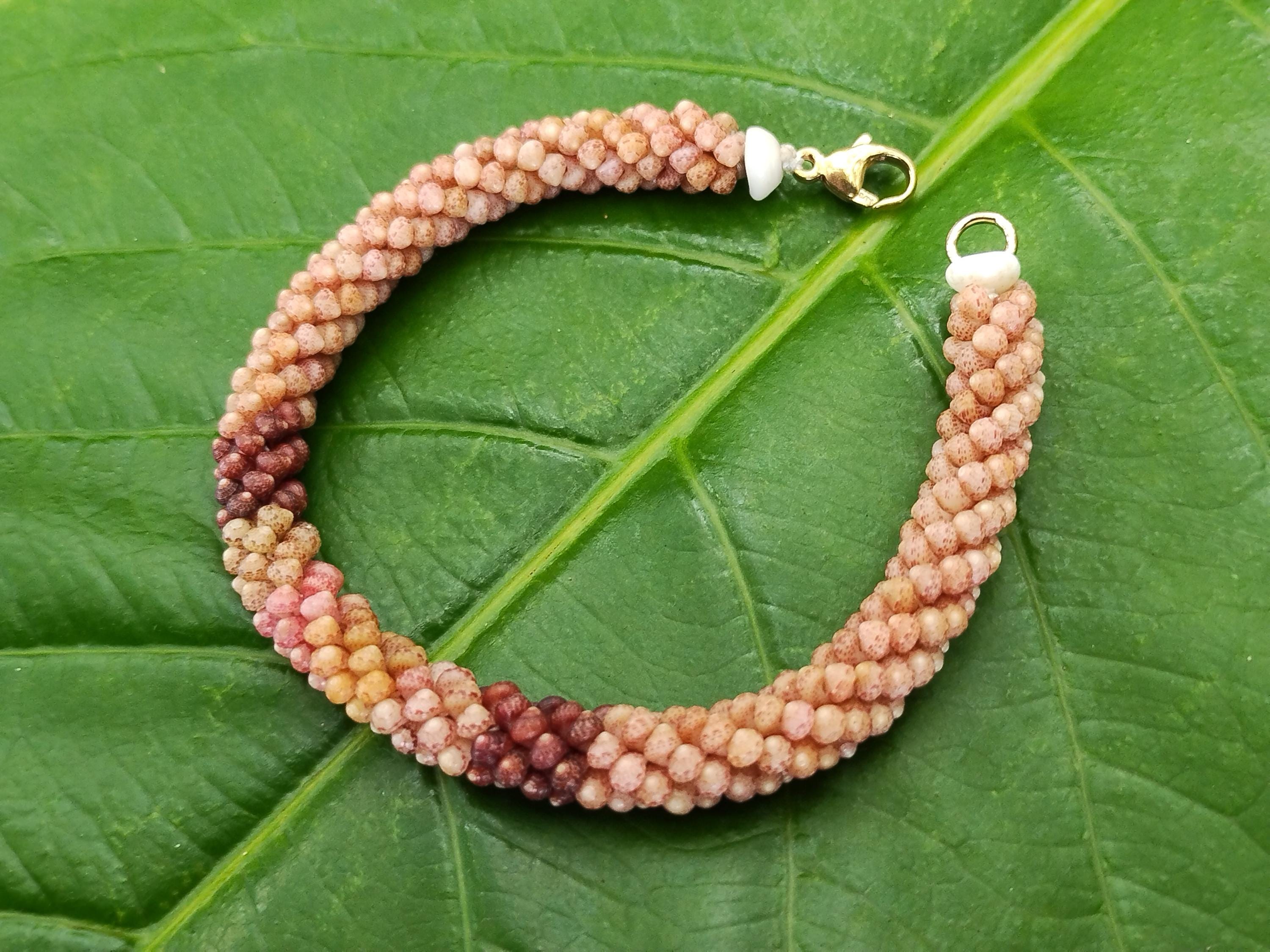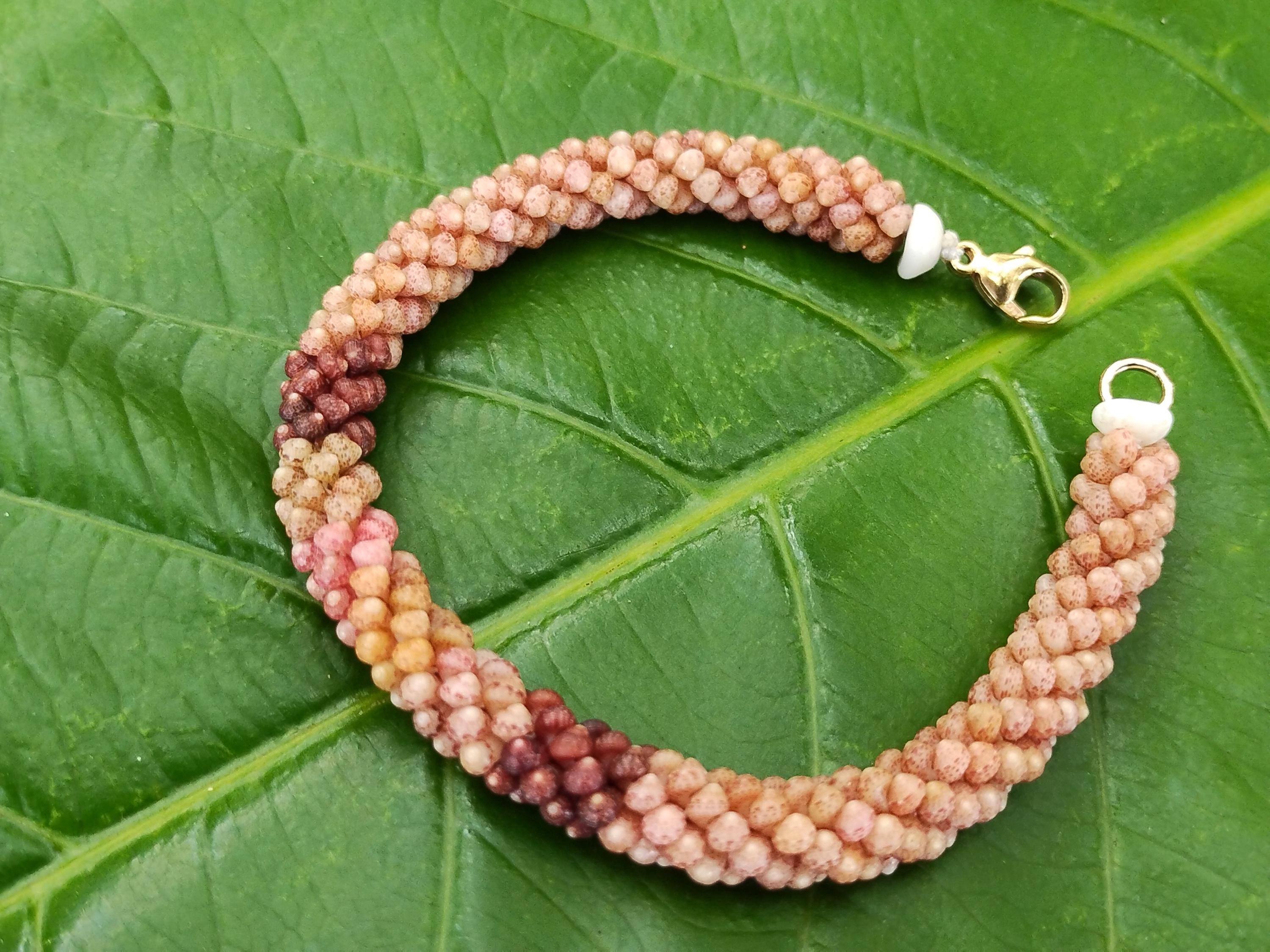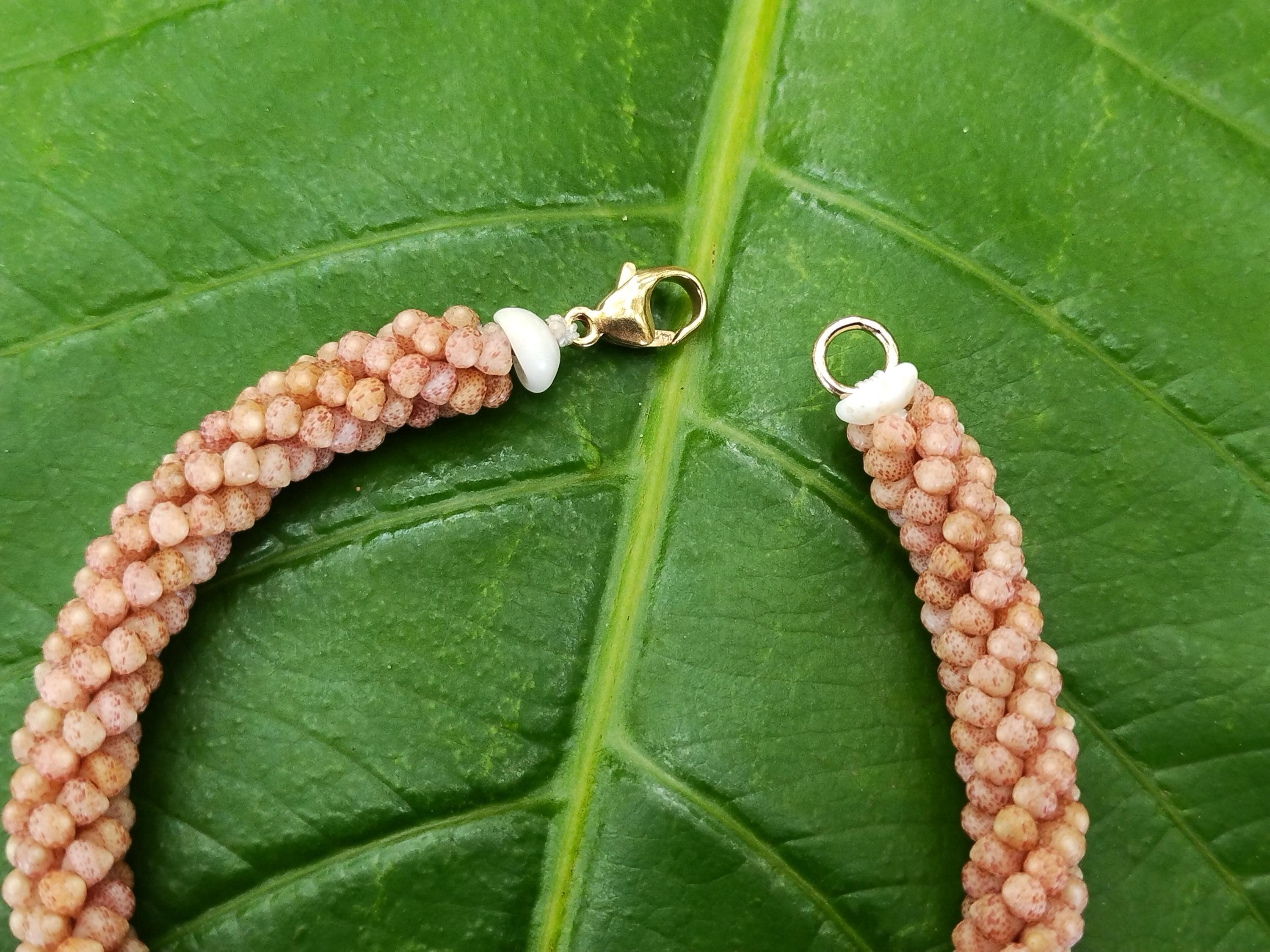 This unique four strand rope style is one that has taken years to perfect and is taking Kahelelani jewelry to a whole new level. Each shell has to be perfect and exactly the correct size to lock into place and create this intricate woven pattern that makes this piece so stunning. It is wrapped tightly in order to ensure it will not untwist or change form. This bracelet is very high quality, all the shells in these peace were gathered from the same beach they more luster an shine then some of the other shells, this bracelet is very soft, strong and comfortable.