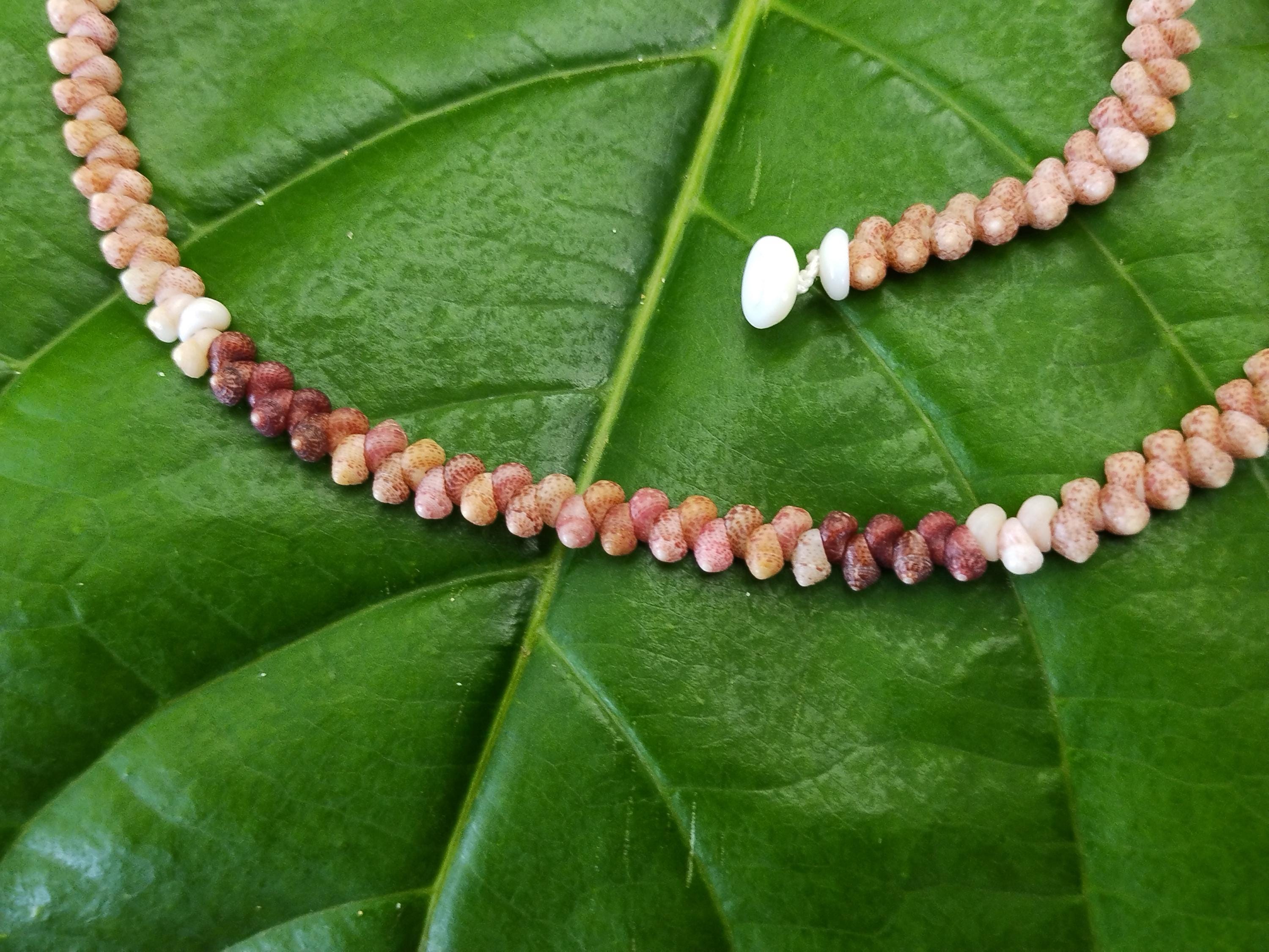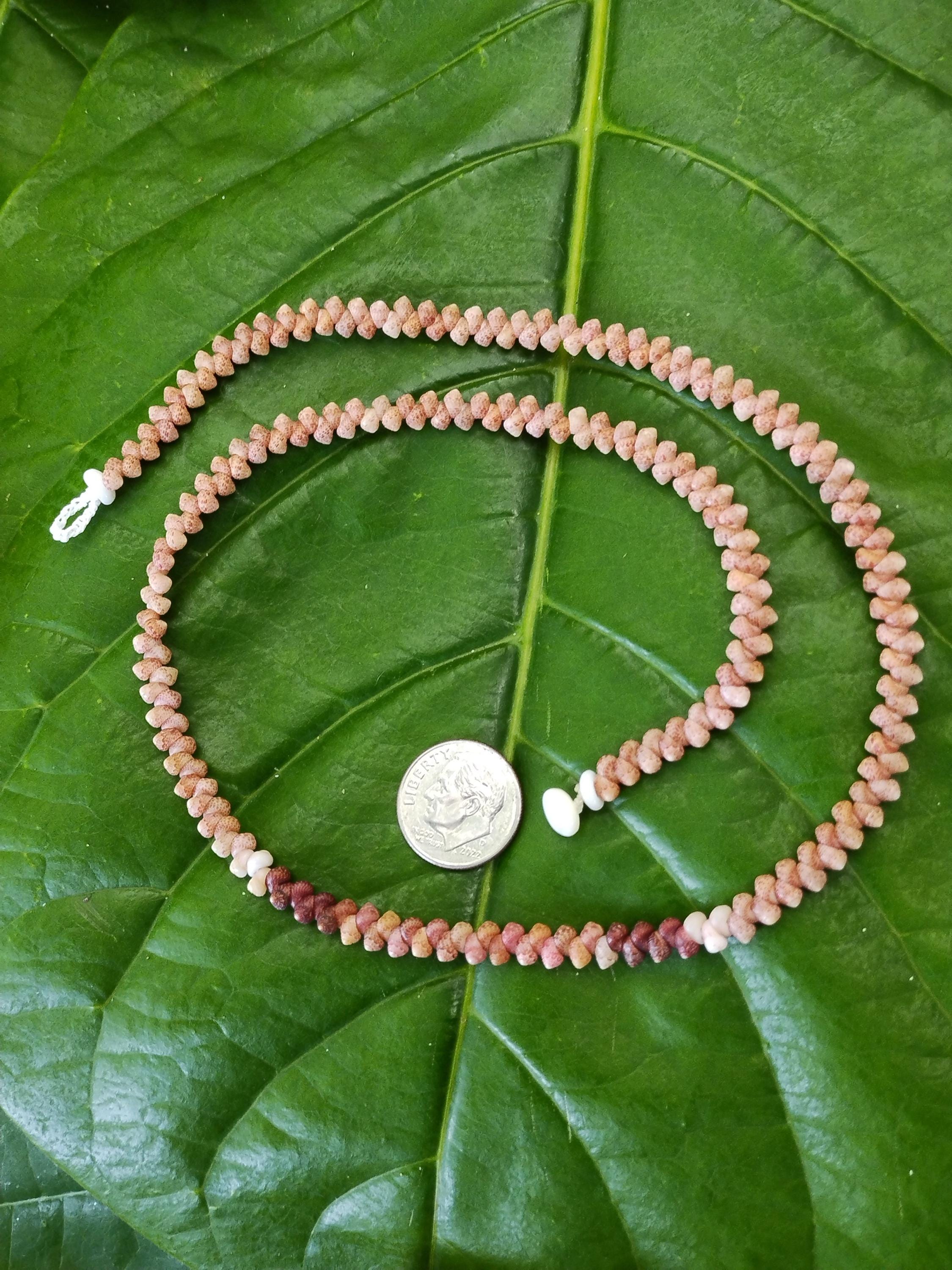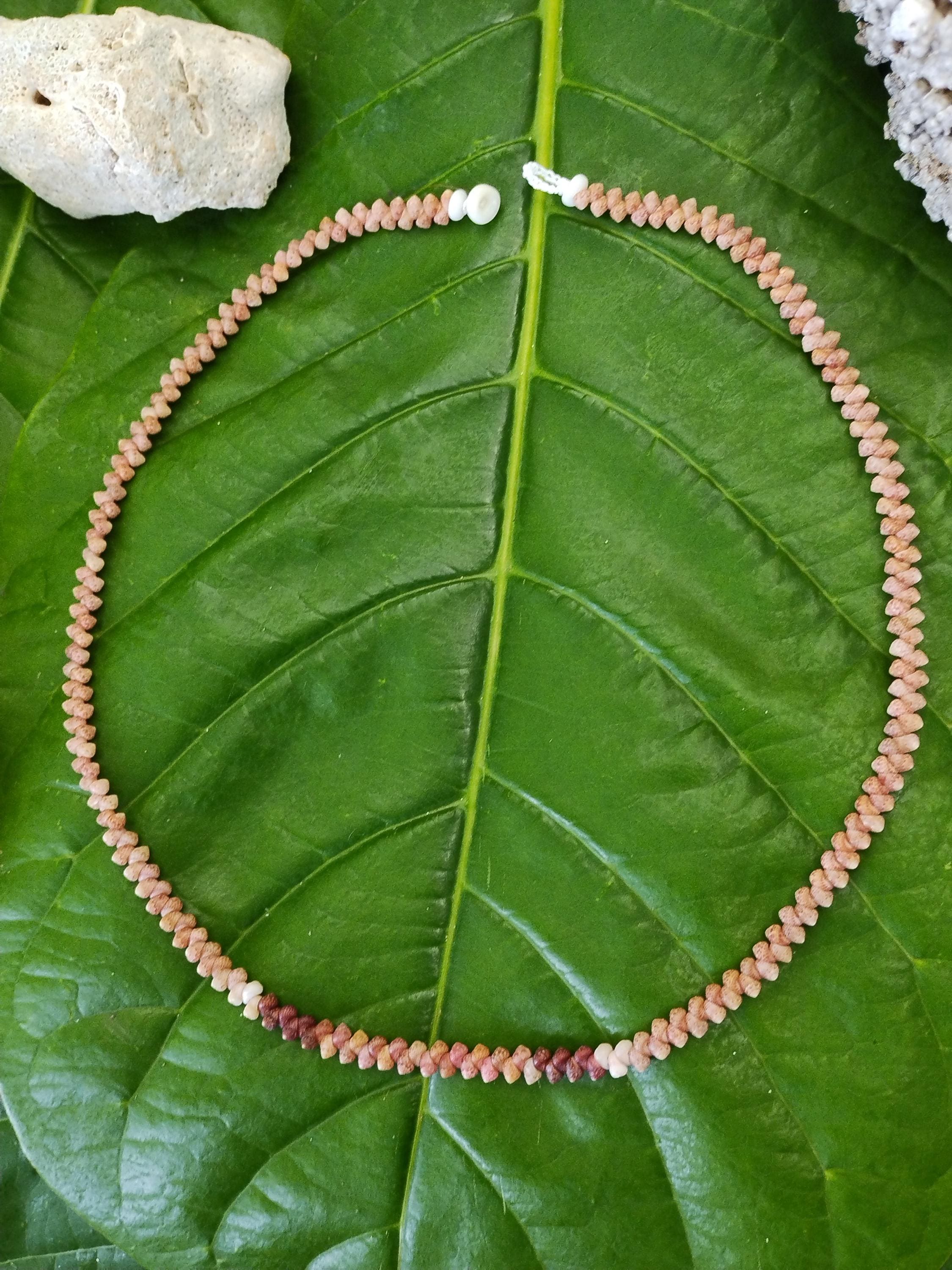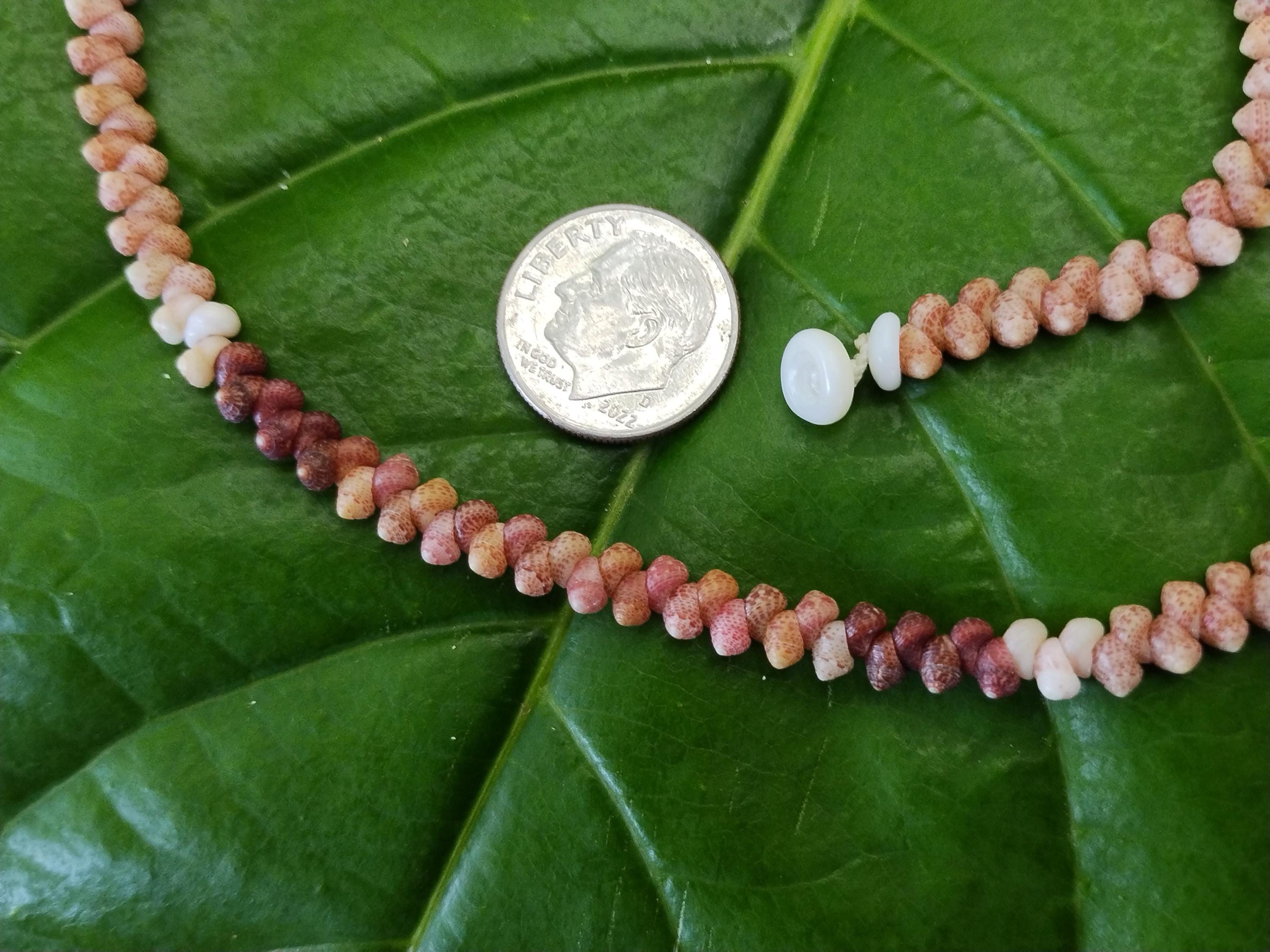 This necklace is made with large size Kahelelani shells all hand picked from the beaches of Kauai, Hawaii. The Kahelelani shells are only found on a few select beaches in Hawaii, and nowhere else in the world. This ancient art form originated on the forbidden Island of Ni'ihau. These are some of the most rare and valuable shells in existence today. This jewelry will continue to gain in value, as the shells are washing in fewer each year due to pollution in our oceans.