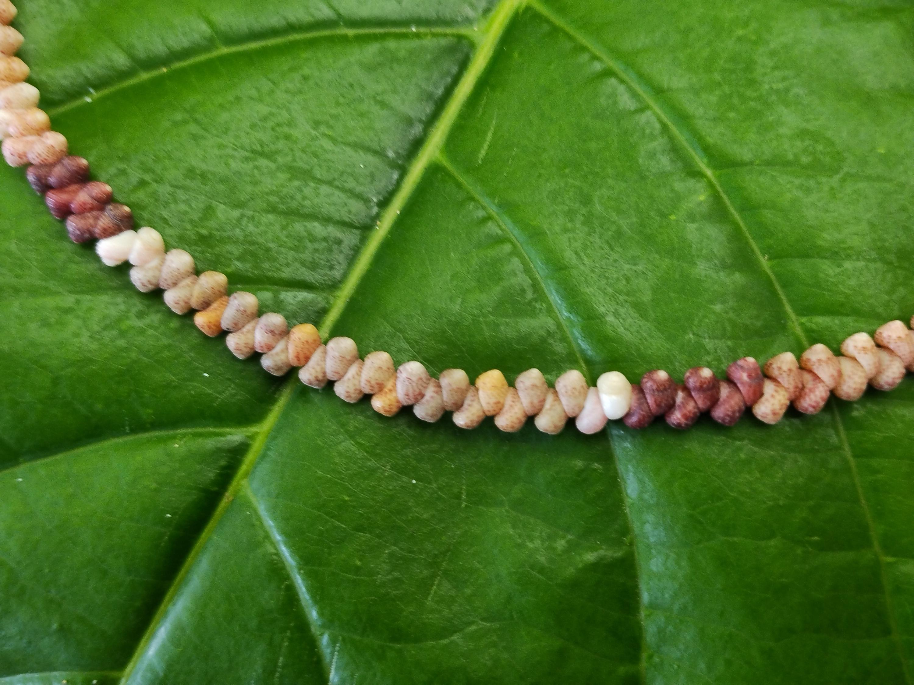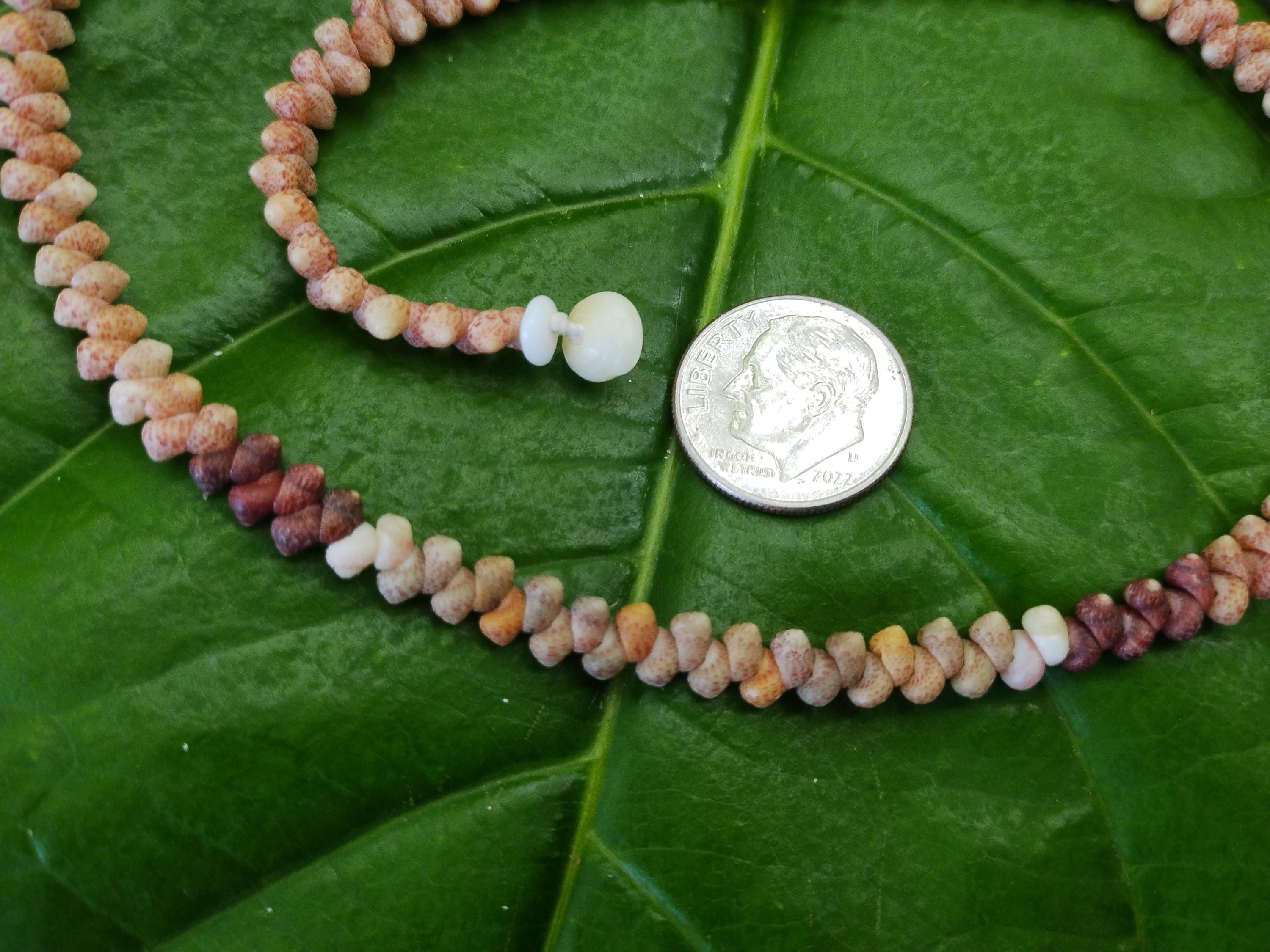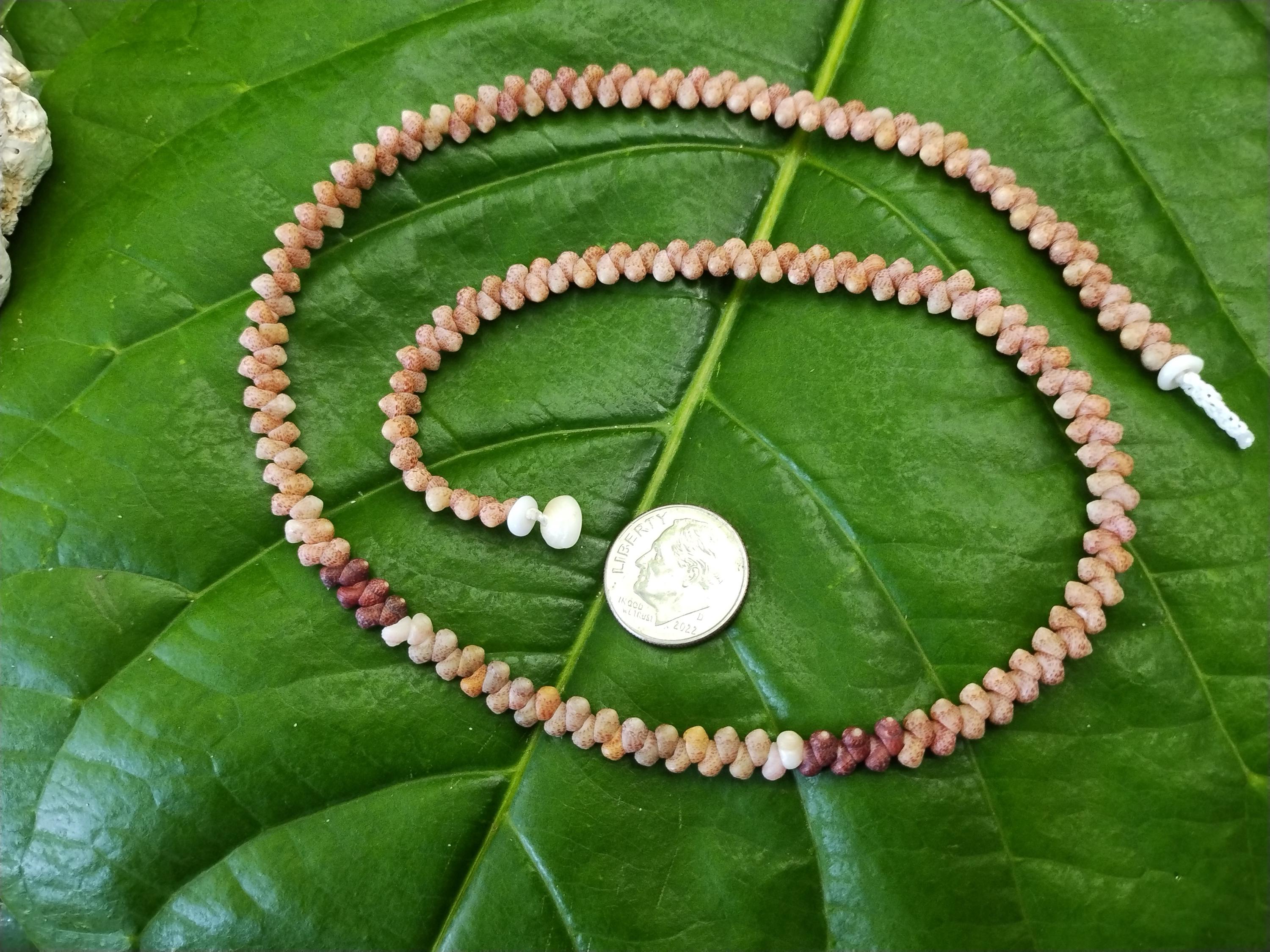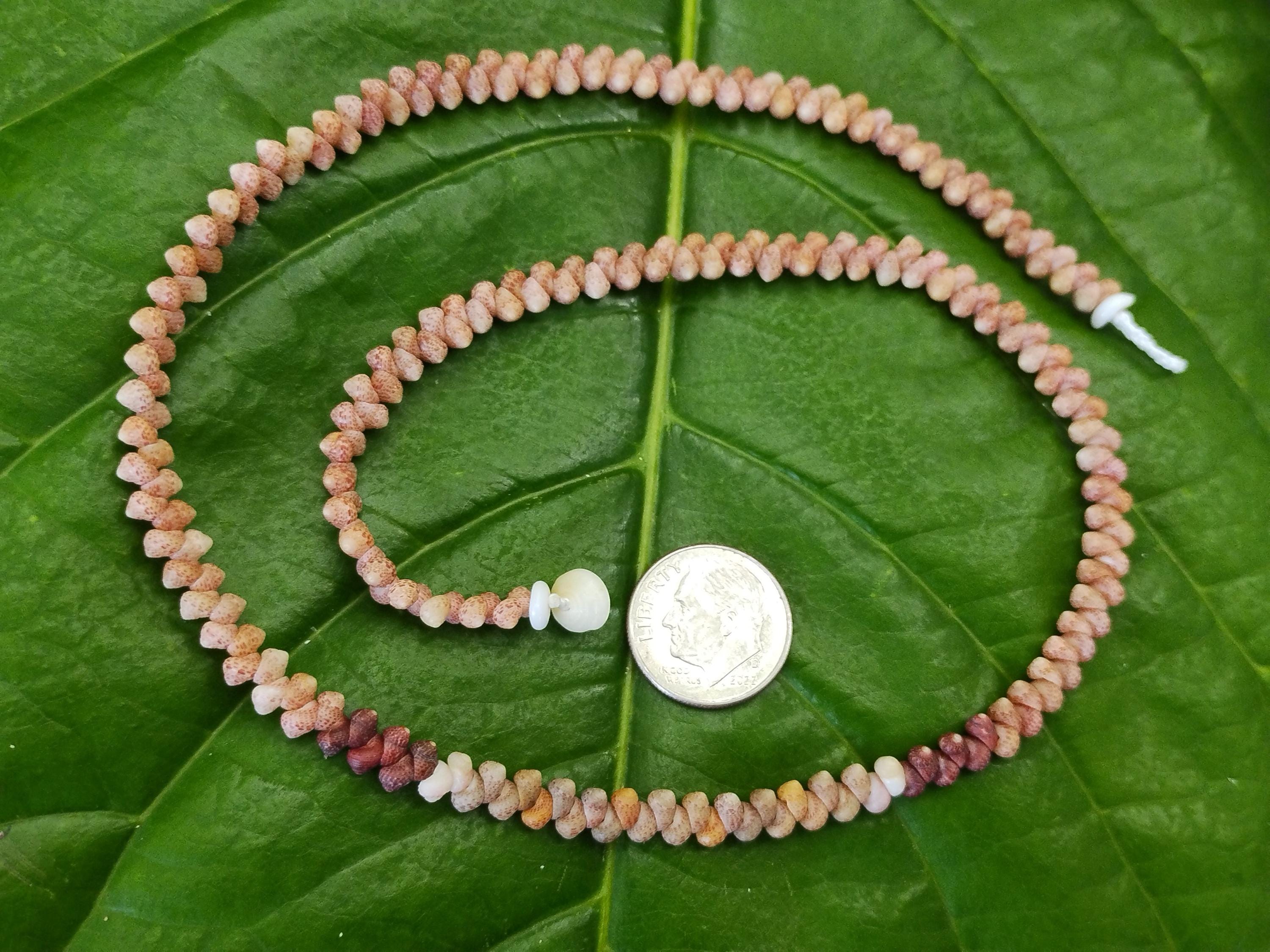 This necklace is made with large size Kahelelani shells all hand picked from the beaches of Kauai, Hawaii. The Kahelelani shells are only found on a few select beaches in Hawaii, and nowhere else in the world. This ancient art form originated on the forbidden Island of Ni'ihau. These are some of the most rare and valuable shells in existence today. This jewelry will continue to gain in value, as the shells are washing in fewer each year due to pollution in our oceans.