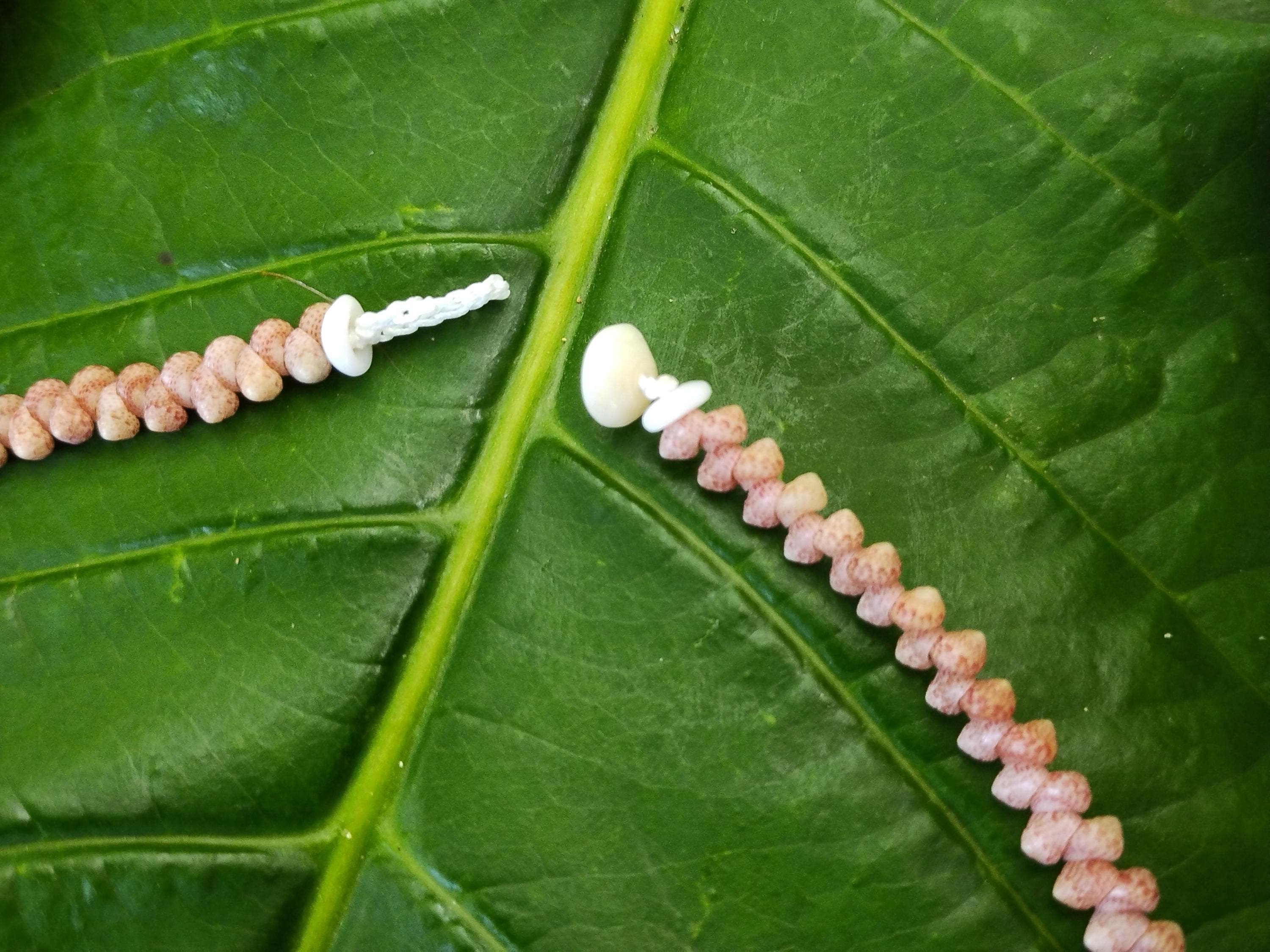 Strung on 50lb' test braided nylon line, so it is very durable and can be worn in water.