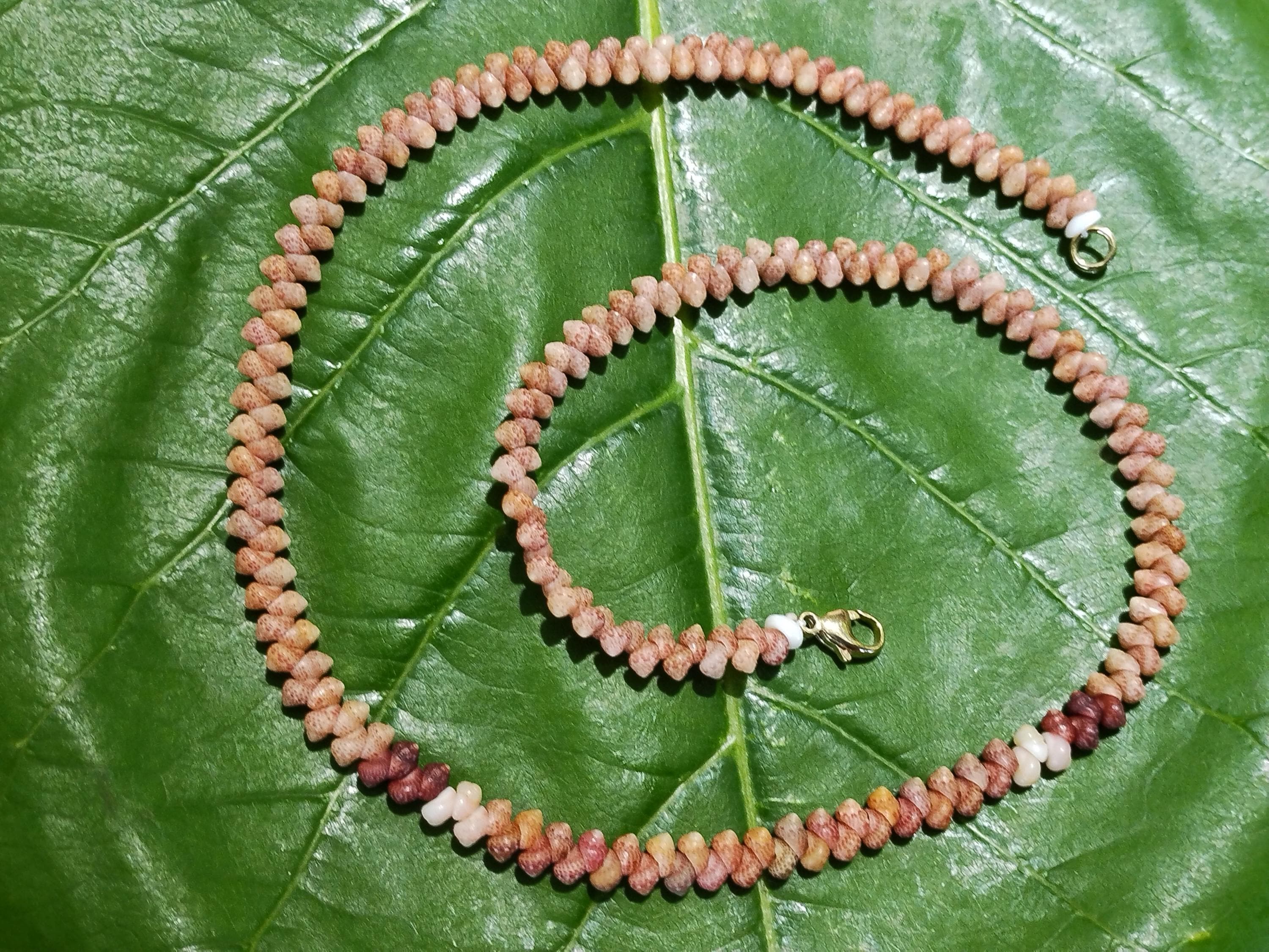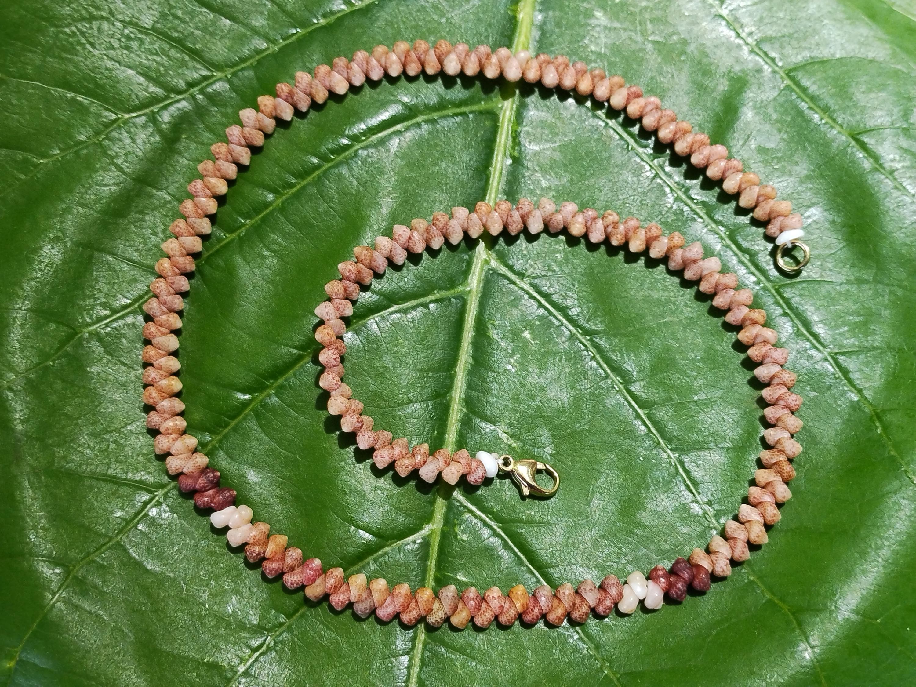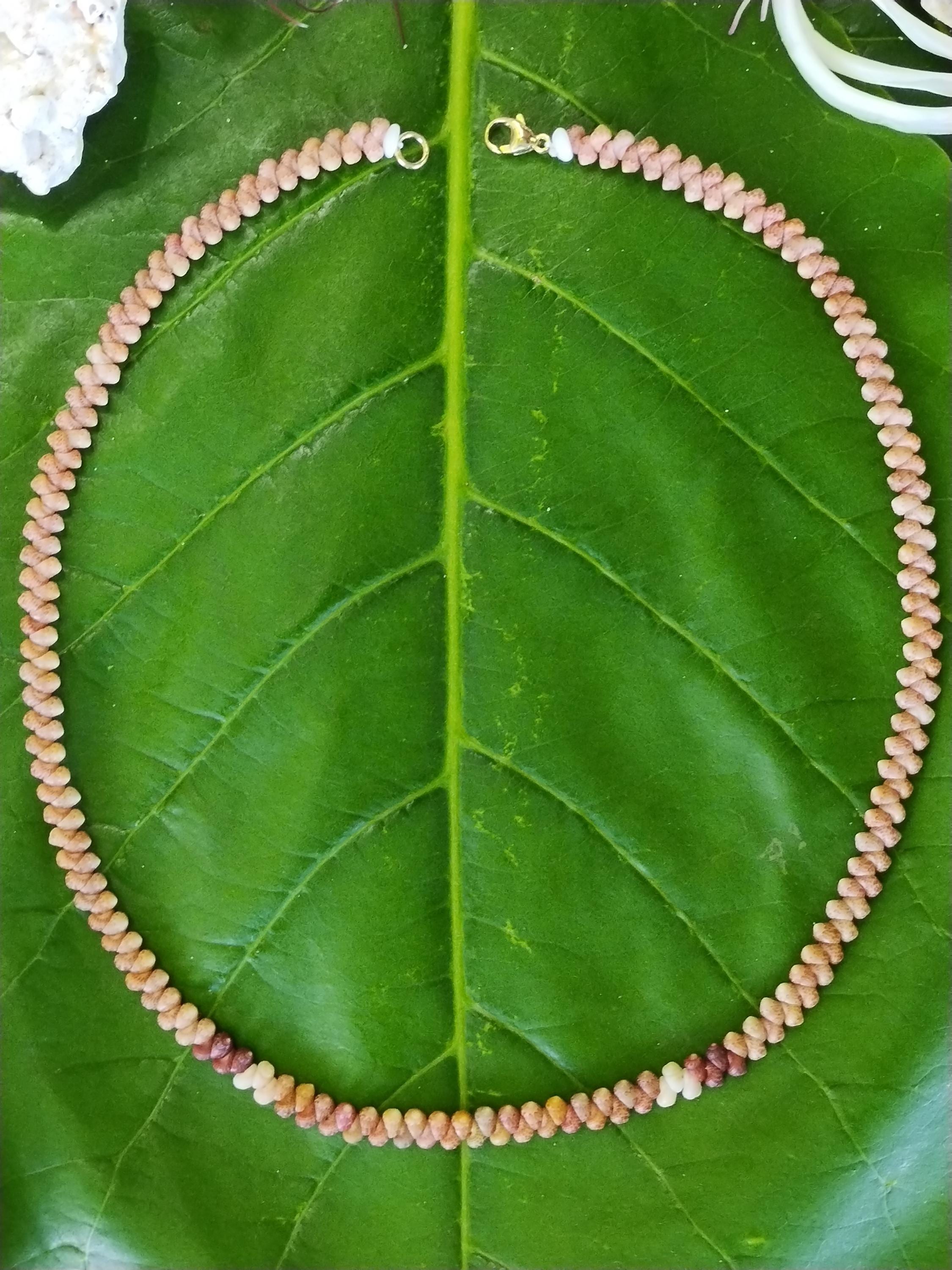 This necklace is made with large size Kahelelani shells all hand picked from the beaches of Kauai, Hawaii. The Kahelelani shells are only found on a few select beaches in Hawaii, and nowhere else in the world. This ancient art form originated on the forbidden Island of Ni'ihau. These are some of the most rare and valuable shells in existence today. This jewelry will continue to gain in value, as the shells are washing in fewer each year due to pollution in our oceans.