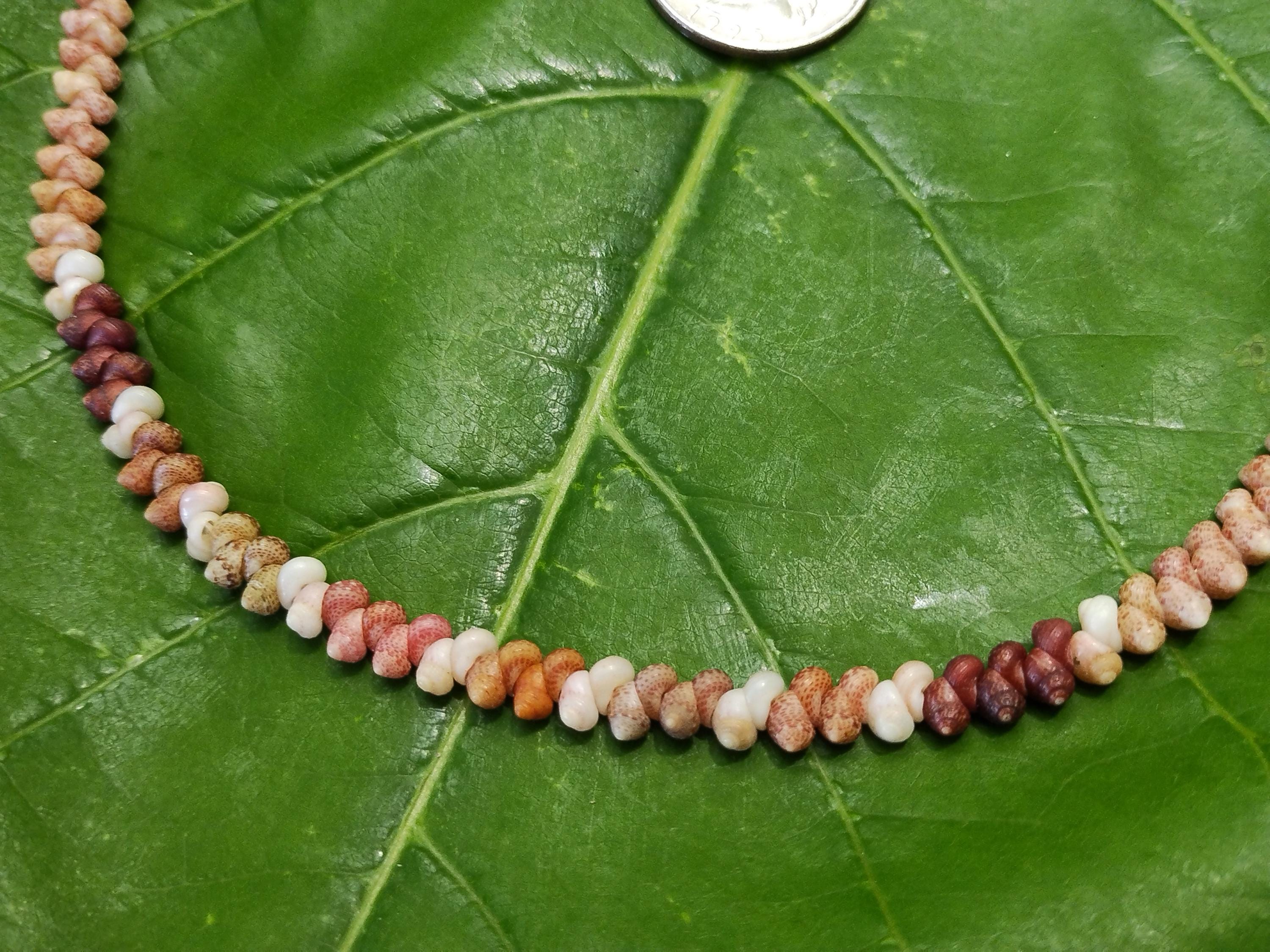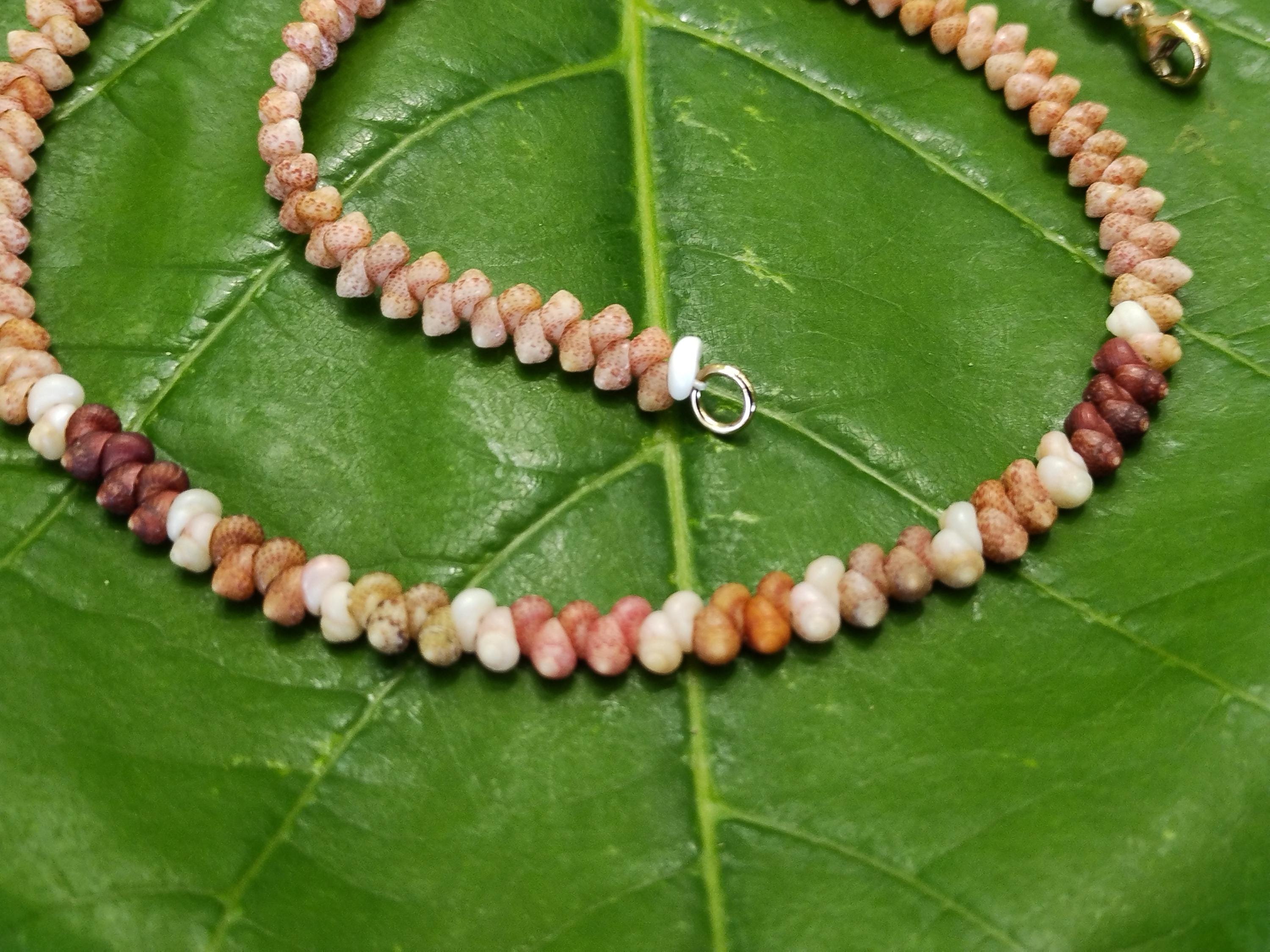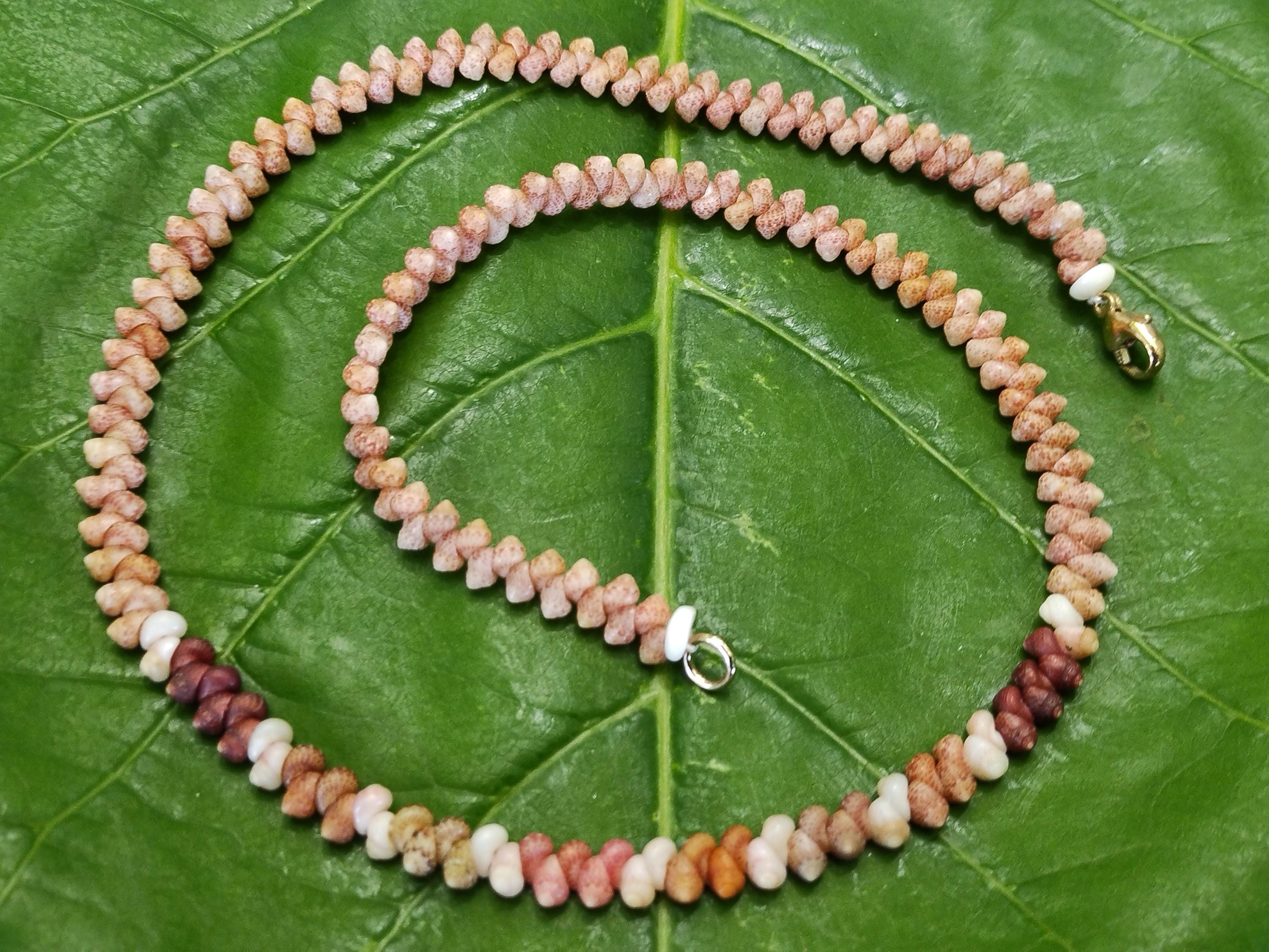 This necklace is made with large size Kahelelani shells all hand picked from the beaches of Kauai, Hawaii. The Kahelelani shells are only found on a few select beaches in Hawaii, and nowhere else in the world. This ancient art form originated on the forbidden Island of Ni'ihau. These are some of the most rare and valuable shells in existence today. This jewelry will continue to gain in value, as the shells are washing in fewer each year due to pollution in our oceans.