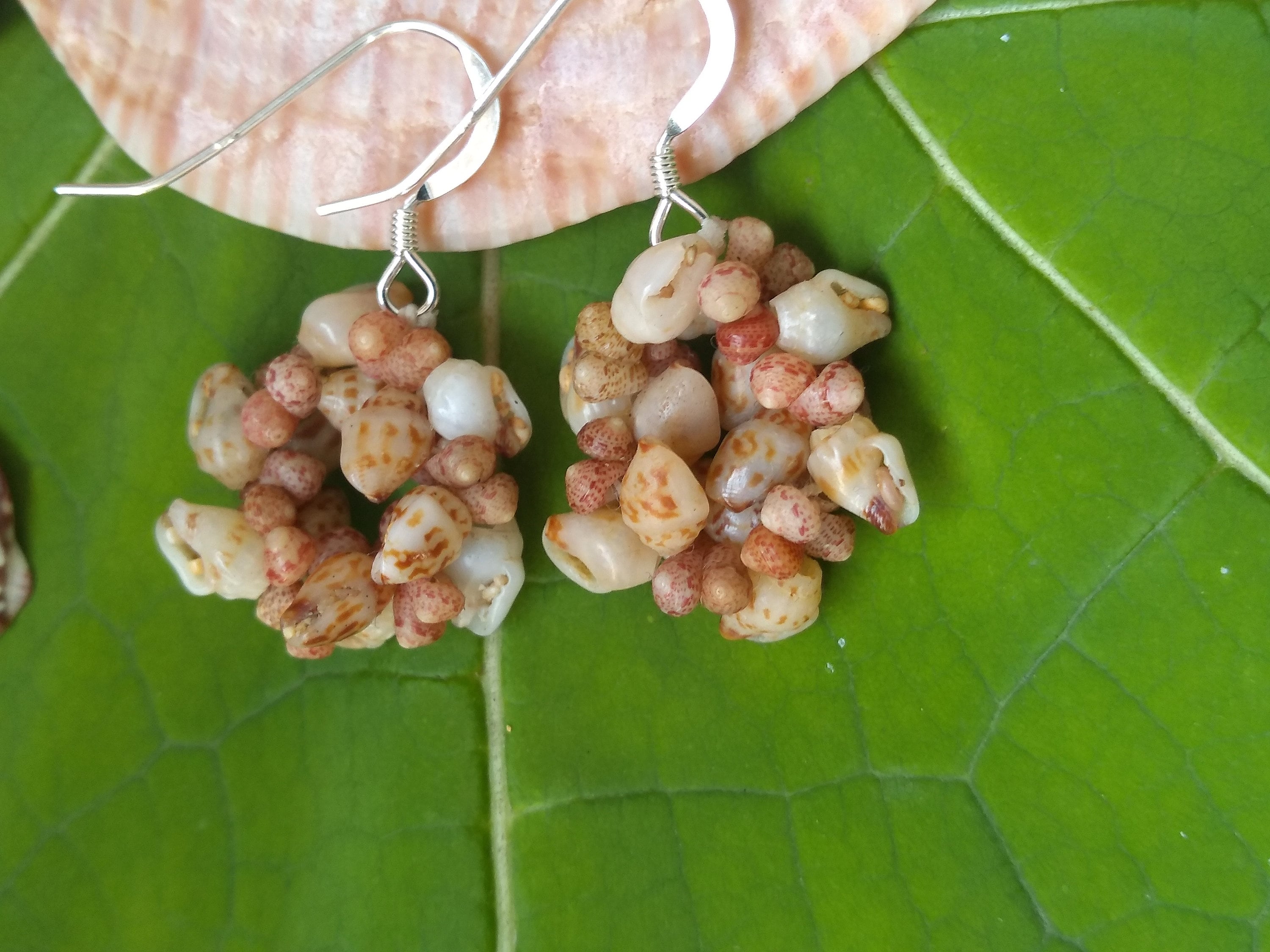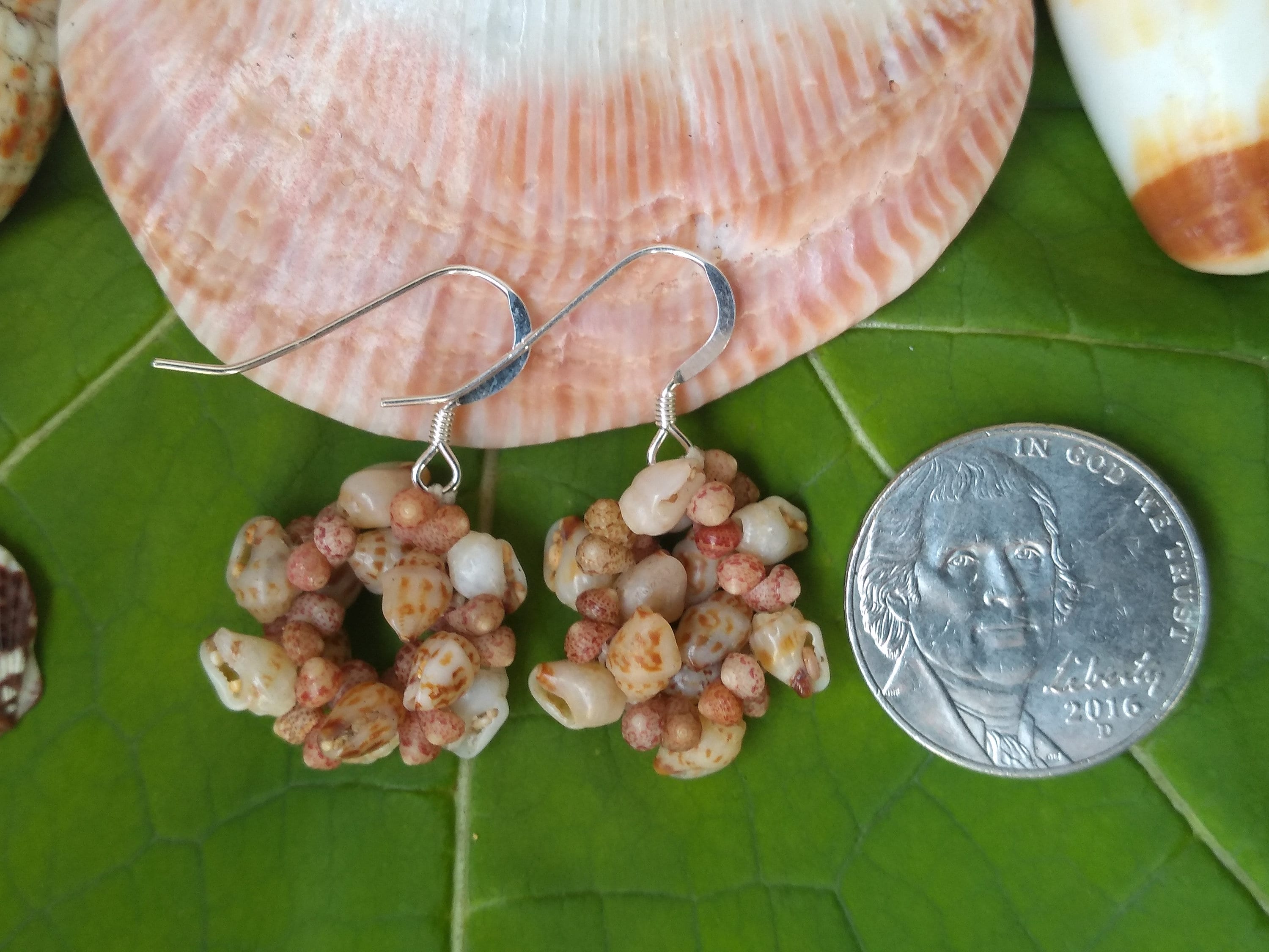 These earring are made using some of the most rare and valuable shells on Earth. The Momi shells (larger white) and the Kahelelani shells are known as "Niihau" shells, after the Island just Northwest of Kauai that has made these shells famous. They are so rare in fact, that they are the ONLY shells in the world that are actually insurable as GEMS! I hand picked each one of these shells from the beaches of Kauai, hand drilled each one, and strung them in a tradition weave unique to the Hawaiian Islands. These earrings create a very elegant one-of-a-kind look to any style. They are very popular here on the Islands. They are strung on 40lb' test braided nylon line so they are very strong and durable and can be worn in fresh or salt water. They are on sterling silver ear wires.
