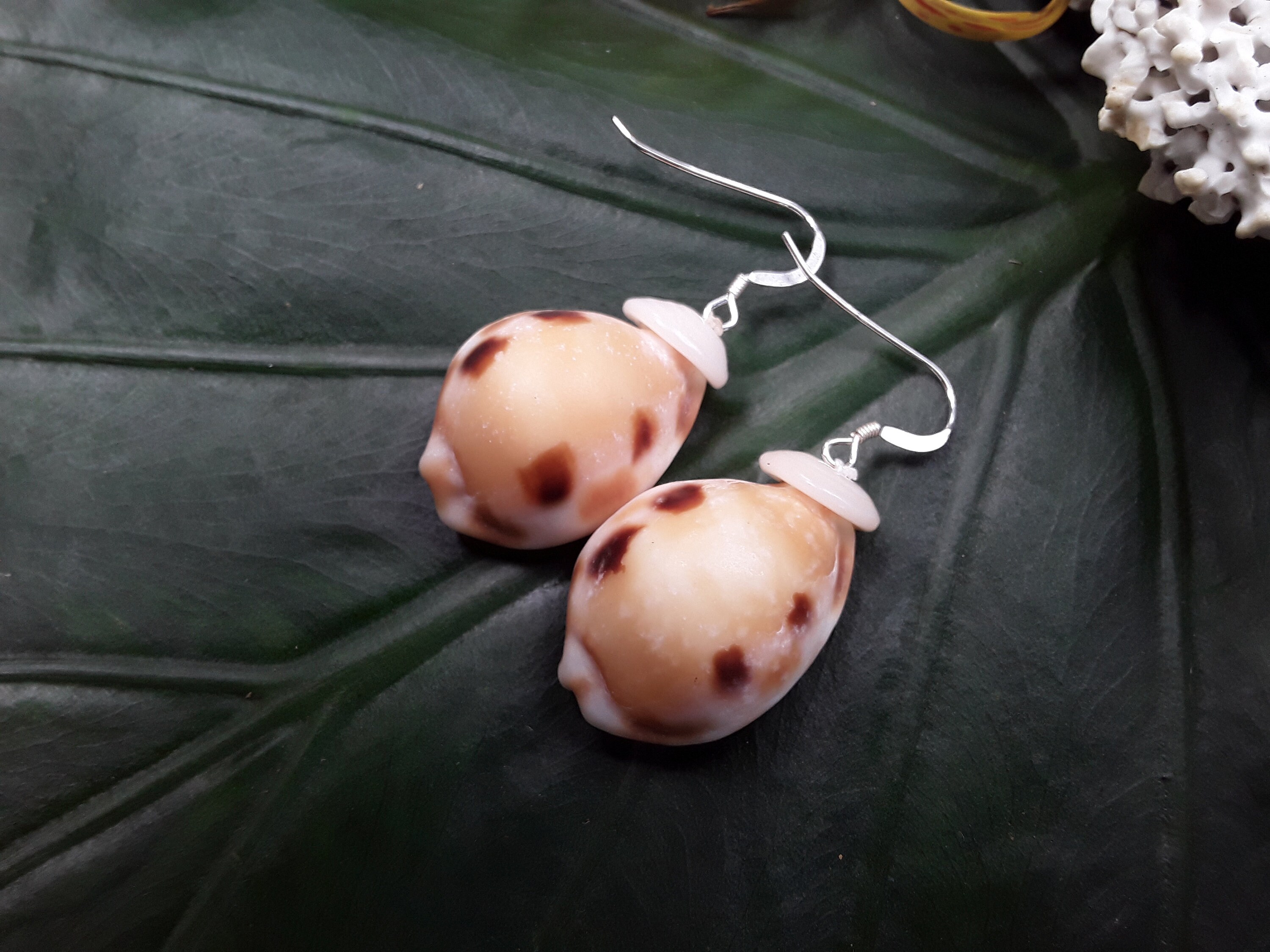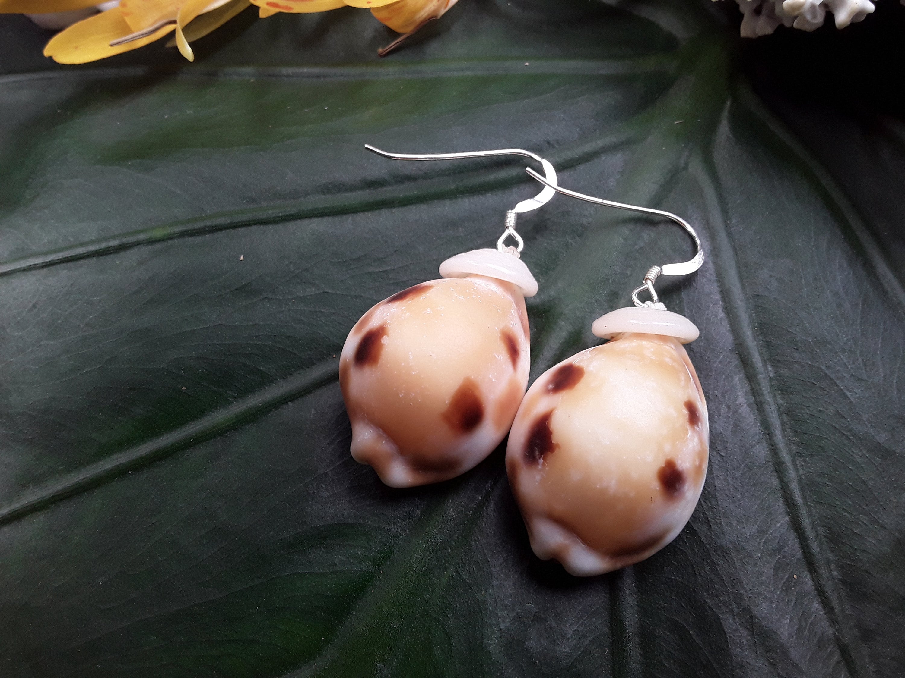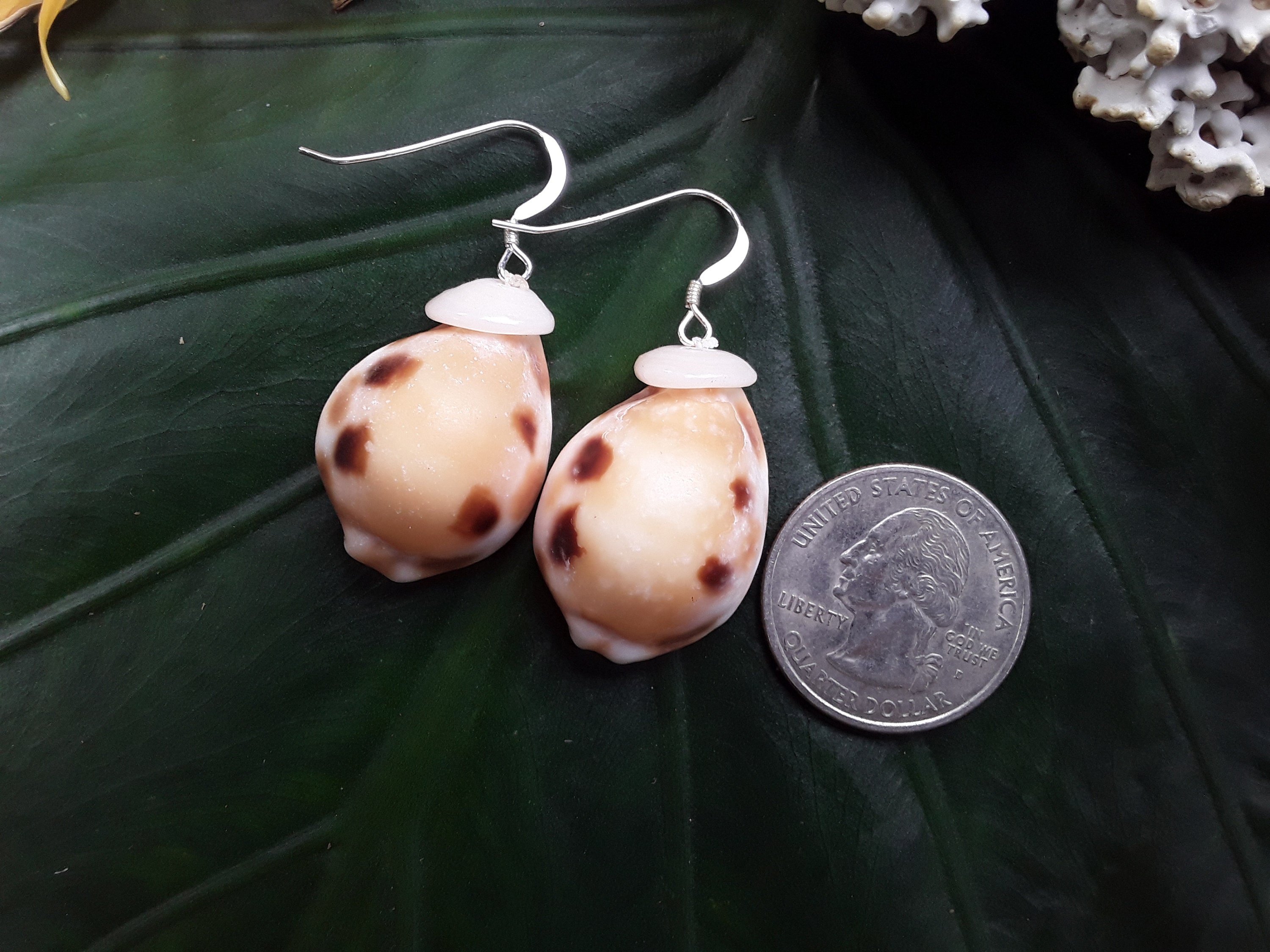 These gorgeous Checkered Cowrie shells were found on the Northern shores of Kauai Hawaii. It took many months of beach combing to find two shells so similar and worn down in the same way. All the shells are becoming increasingly hard to find as their habitat is being endangered, so it is truly a delight to find such a perfect match.I finished these earrings with two white puka shells and strung them with 40lb braided nylon line so they can be worn in the water and are very durable. They are on Sterling Silver ear wires and will come with rubber backings. These earrings are wonderful way to add some Aloha to any day and would make a wonderful gift.